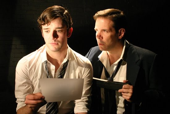 Their task turns out to be the equivalent of baking a cake completely from scratch… and not even having the ingredients or a recipe to work with. The very act of finding other gay men was an ordeal. Even when they found them, the men were almost always reluctant to identify themselves as gay. Having meetings was another ordeal. (As one character points out, even two men renting a hotel room together would raise too much suspicion.) To get some strength behind their fight, Hay and Gernreich attempt to find a famous heterosexual man who would stand up for their agenda, the equivalent of a celebrity spokesperson today. Director Vincente Minnelli (Played wonderfully by Tom Beckett) seems like their candidate, but he declines their offer. Eventually, Hay and Gernreich find three more dedicated gay men: Bob Hull (Matthew Schneck), Chuck Rowland (Tom Beckett), and Dale Jennings (Sam Breslin Wright)… and, quaint as it may sound in 2009, the audience gets to witness a milestone when five openly gay men are finally together in one room in 1950. That was the first meeting of what would become The Mattachine Society, the first enduring GLBT rights organization in America. A major challenge to their nascent movement comes when The Mattachine Society decides to publicly stand behind Dale Jennings after he was unjustly accused of lewd behavior in a men’s restroom in 1952. The results of the trial become a pivotal point in the play, as it was a pivotal point for The Mattachine Society in actual history.