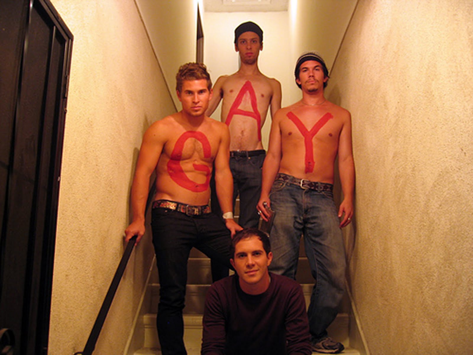In “The Art of Being Straight”, the main character– a cute twentysomething guy named Jon (played by Jesse Rosen, who also wrote and directed the film)– develops a bad case of, shall we say, “the bisexual blues”. New to California, Jon was known by his beer buddies as something of a college Casanova. In one telling scene approximately halfway through the film, the audience gets a good taste of why Jon is such a hit with the females. It’s not just his good looks. He’s sensitive, shows the girls attention, and in the words of the Pointer Sisters, he’s a man with a “slow hand”. Despite his success with women, our hero starts to question his sexuality in a big way after being successfully seduced and bedded by his new boss Paul (Johnny Ray Rodriguez), a confident (and maybe just a tad predatory…) older guy who believes that Jon is more of a “man’s man” than a ladies’ man. Ambiguous feelings about his new same-sex experience aside (When one friend asks Jon if he liked it, he responds, “A little… I liked the attention!”), Jon goes back to Paul’s impressive arms again and again. Yet, Jon still digs women too. Eventually, the pressure of wondering if he’s gay or straight becomes too much. His job performance suffers, and social situations become increasingly tense: At a Halloween party, Jon becomes unnerved when a girl innocently asks him if he’s gay. (We get the hunch that he wouldn’t have been so bent outta shape by that inquiry if he didn’t just come back from his male lover’s house…) Jon wants to talk about all this, but can’t seem to open up about his new man-to-man romance with his unyieldingly straight college buds: the kind of guys who love to throw around terms like “colon cowboy” and “fag-a-muffin” as much as a frisbee on a beach.