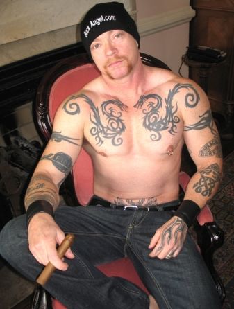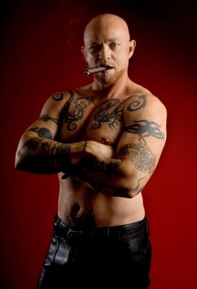 Here’s a challenge: Ask 10 different guys “What makes you a man?” After a lot of fumbling around for a response, you may get up to 10 different answers. But I guarantee that at least one guy will say, “I’m a man because… I have a penis!” Meet Buck Angel, who is an adult film star as well as a producer and director. He performs with both men and women, although his films with men have proven to be more popular. His movie “More Bang for Your Buck 2” was nominated for two Adult Video News 2009 Awards and a Gay Video News 2009 Award. He’s heavily tattooed, has a shaved head, and is buff enough to challenge any of the gym queens strutting down Eighth Avenue in Chelsea. Now, here’s the money shot: Buck Angel was born a woman– and still has a vagina. Buck Angel and his wife Elayne live happily in the Yucatan, Mexico, but Buck tours all over the world: performing live, promoting his truly renegade XXX movies, and challenging everyone’s notions of gender and sexual orientation. After months of playing e-mail tag with Buck, I finally caught up with the pioneer porn star while he was in New York City for Gay Pride. At his hotel, we discussed porn, safe sex, and how he doesn’t always see eye to eye with the trans male community: “I’m not a ‘transsexual man’. I’m a man. If you look at what the word means, it means ‘transitioning’, from A to B. It’s pretty basic, dude. I’m not transitioning anymore. I’m done. A lot of guys live their lives as ‘trans men’, which is a whole different mindset. I really don’t consider myself that. I am and I always will be a transsexual, but I live my life as a man.” Let’s just say that anyone who meets Buck Angel in person wouldn’t even question his manliness! The two of us don’t just talk about serious stuff, though. Mr. Angel tells me a few truly hilarious, behind-the-scenes stories about the porn biz– to which he adds, “My life sometimes feels like a cartoon!” Make that a cartoon for adults only!.
