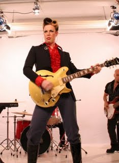 Whether or not she’s performing, Lisa Jackson is appealing to watch. In street clothes and without makeup, she has the androgynous appeal of a cute New York City boy; when done up, she evokes a earthy, European-style beauty. Throughout the film, Jackson displays an impish quality whether she’s opining about the empowering qualities of taking estrogen, getting her electrolysis treatments, or giddily declaring, “Vaginas can be icchy– but I like them!” Other aspects of her personal life are shown, including Jackson visiting her hometown in Georgia, where her Southern accent mysteriously resurfaces. Director Becca Goldstein also gets a lot of lively input from Lisa’s peers, many of them musicians and artists themselves. The first one we meet is Jayne County, a transsexual music artist in her own right. Although Jayne needs a little prompting (Remember, this rock star has been in the NYC music scene for a L-O-N-G time!), she offers some of the funniest moments in the documentary. Ms. County states she admires Lisa because, as opposed to a lot of the drag and transgendered performers she knew, Lisa wrote her own music, sang in her own voice, and played her own guitar– which was presumably rare when genderfuckers were just starting to appear on the queer music and performance art scenes. The late Dean Johnson of the Velvet Mafia calls Lisa’s persona that of a “warrior goddess” and likens her to the berdaches– the high-regarded Native American people who were of dual genders and reportedly held special powers. Other interviewees include legendary drag artist Mother Flawless Sabina, Rose Royale, and actress Rosie Perez, who compares Lisa’s gender outlawism (“A trans rock star!” Perez proclaims excitedly) with Little Richard, whose flamboyant looks and antics broke the mold back in his day as well.