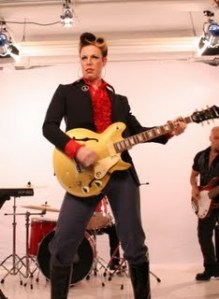 Lisa Jackson is first and foremost a musician. Therefore, it’s only fitting that Becca Goldstein’s film “The Lisa Jackson Documentary” open with footage of Ms. Jackson during a live performance. She’s screaming out to the audience, “Are you a rock and roll star? I’m a rock and roll star!” Throughout the movie, we get to see a lot more footage of Lisa turning it out with songs like “I Am A-O-K”. On stage, Lisa Jackson’s “look” is sometimes influenced by the androgynous style of David Bowie in the Ziggy Stardust era. Other times, she adopts an “80’s bad girl” look (Think Debbie Harry and “Like a Virgin”-era Madonna), with the lacy blouses, miniskirts, high heels, and a lot of makeup. Musically, Lisa Jackson is undisputedly guitar and vocals-driven rock and roll, with the spirit of punk running through. As those who have been in that scene know, that spirit was all about intense performance, pageantry, an “anything goes” mentality, and…breaking the rules! Early on, Lisa Jackson probably realized that breaking the rules– in this case, society’s rules– would be necessary for her own survival: The singer/songwriter started out life down South as a handsome, dark-haired boy named Steve. But Steve knew that beneath the masculine surface, there was a woman inside.