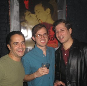 After the film, actor Nate Steinwachs told Jed Ryan and Clover Honey that one of his scenes– the one where his character goes totally mental– was inspired by John Waters’ psychotic heroine Dawn Davenport from the 1974 cult classic “Female Trouble”. Actor Sal Bardo recalled what’s likely gonna be the most memorable scene of his entire career: being naked and smeared with blood by a mass of hot hands. Out of nine characters in “Eulogy for a Vampire”, only two make it out alive at the end of the film… but most of the cast as well as the crew were not just alive but kicking too at the “Eulogy” afterparty at The Hose in NYC’s Alphabet City, along with the nightspot’s usual clientele of East Village trendsters. While scenes from “Eulogy” were shown in a montage of black-and-white camp classics, actor Craig Philip Lumsden told Under the Pink Carpet about what it was like for the all-male cast to be locked in a 19th-century manse in upstate New York for the seven day shoot. But get your mind outta the gutter, kids: Despite the testosterone-heavy cast, there was no monk-y business going on. The cast was completely professional! (Sigh…). And director Patrick McGuinn, clearly pleased with the audience’s reaction to the film premiere that night, told us that he’s already at work at his next movie…