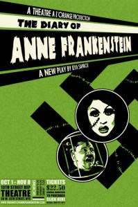 “The Diary of Anne Frankenstein” is now playing at the 13th Street Rep at 50 West 13th St. (between 5th and 6th Aves,) through November 29th. Showtimes are Thursdays and Saturdays at 9PM, Sundays at 7PM.