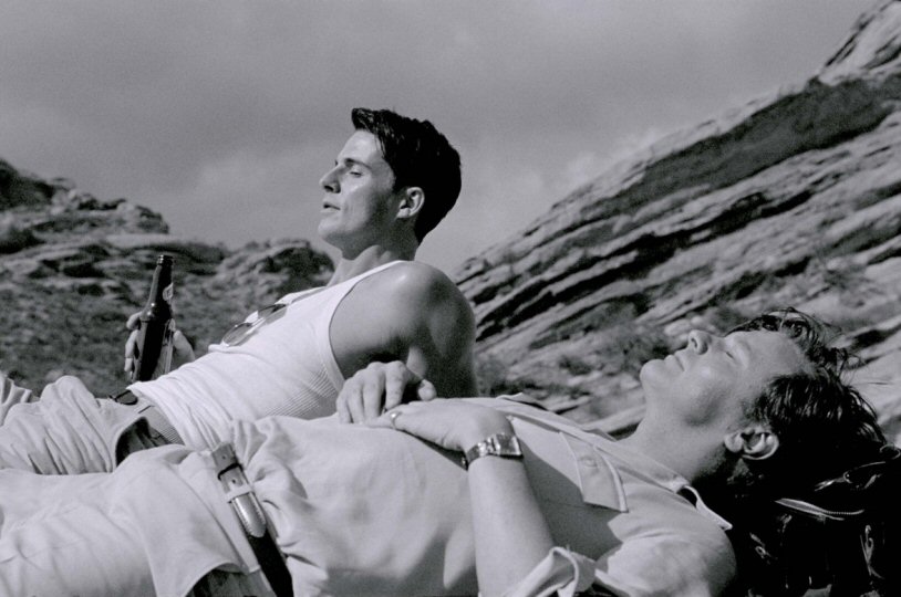 “A Single Man”, the film, takes place over the course of a day. Colin Firth plays the titular role, English professor George Falconer– a Brit living in America. George is meticulously planning his suicide right down to the last detail. Via flashback, we meet his youthful lover of 16 years, Jim (Matthew Goode). In one early scene of supreme acting, Firth first learns of his partner’s accidental death via a phone call by Jim’s family member, who adds polite yet stinging insult to injury by telling George that “only family” are invited to the funeral. In a cinematic stylization, the flashback scenes of George’s happier days are warmly and brightly lit, while the scenes of his current melancholy existence feature more dulled lighting. Later on in the film, we meet George’s friend and former lover: the appealingly over-the-top Charlotte (Julianne Moore), also a Brit. While Moore’s character is occasionally campy (She smokes pink Sobranie cigarettes; and in one scene when applying her makeup, she appears to be channeling her inner drag queen.), Moore and Firth’s scenes together feature some of the finest acting and most poignant scenes in the movie. George also finds himself to be the object of intrigue of one of his students, Kenny, played by Nicholas Hoult. (With a chiseled face and body to match, Kenny seems to have come straight out from an Abercrombie & Fitch ad, if Mr. Ford will forgive the comparison to another designer.. Incidentally, Hoult’s character is always lit in that same warm, bright light I mentioned earlier.) The youth seems to want to get to know his professor on a more personal level. Teacher and student do meet up for a session of nude swimming and then drinks at George’s apartment. What happens (or doesn’t happen) between them, as well as the scene that follows after that, is pretty heavy… and very open to interpretation. Audiences may have hoped for a conclusion that was a little more, shall we say, “gay” (“Gay” as in homosexual, and as in happy…), but I have no doubt that Ford’s choice of this ending was likely faithful to the novel… as well as to the time period the movie is set in.