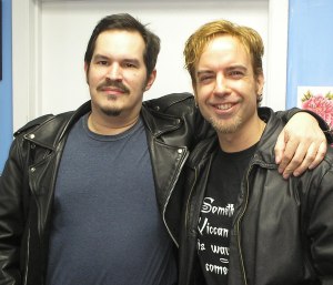 AC: Oh, absolutely! There’s so much “body fascism” in gay culture. I mean, it’s glaringly obvious. If you pick up any magazine that is “mainstream gay”, they have thin hairless models wearing very, very tight clothing. You don’t see a guy who’s fuller, who’s rounder, or even who has more facial hair… unless it’s that really overly manicured facial hair, which is barely facial hair. It’s probably drawn in with a pencil, or Photo-shopped in, for all I know! (Both laugh) Mainstream gay culture tends to be very youth-oriented, or kind of “Peter Pan”-ish, I hate to say: not wanting to grow up. Generally when you see a guy who is bigger, fuller, rounder with more facial hair, you think “older”– and young gay men never want to grow old. I do see body fascism. Even in the bear community, there’s body fascism, as everybody is aware of. “Muscle bears” versus “gainers”; hairy versus non-hairy; blah, blah, blah…