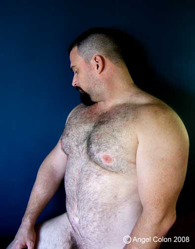 AC: No. It’s my second book, actually. My first book, a small one, was called “Hirsute”. It was a thin book. I started with a few guys. I like taking pictures of guys who look more “masculine”– I say that in quotes, because as we know, “masculine” depends on the person. It’s very subjective. I did that, and “Extensions” was the second book, because the first one did pretty well. A lot of people talked about it. I did a smaller-sized book this time but with more pages, and I varied the men. Not all of them are hairy, although there is some facial hair on everybody. And, they’re not all built like “bears”. Some of them are thinner, some are very muscular. That’s the idea of “Extensions”– I “extended” the idea of “Hirsute” into something else. The third book will probably be called “Kink”! Who knows? We’ll see!