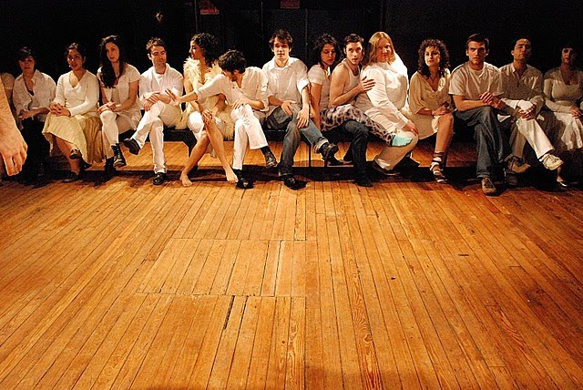 In “La Boheme”, painter Marcello tells his philosopher friend Colline, “Now that you’re wealthy, you must bow to convention!” That’s just one of the many insightful lines from the original opera that could, in fact, apply just as well in New York City, 2010 as they did in nineteenth century France. Henry Murger’s novel was written back in 1849, but the message beneath the drama, the tragedy, and the love story (and, yes, the comedy that comes through as well…) of this classic is more timeless and relevant than ever. At the center of “La Boheme” is the story of young artists struggling to survive in their often cruel urban jungle. One of the characters deals with survival of the most basic kind, but there’s much more beyond the dichotomy of life and death. For most of these bohemians, it’s about the centuries-old human challenge to keep your own personal visions and dreams alive. (The moment when a young writer resorts to burning his manuscript to keep warm in the winter is an emblematic scene.) It’s no mystery why “La Boheme” is so often revived– and reinterpreted– for live performances. Jeremy Bloom’s avant guarde new vision, adapted by Brian Rady, is spoken rather than sung, the set is minimal, and Bloom doesn’t indulge in elaborate props (A cardboard box substitutes as a stove, the characters drink their “wine” from Dixie Cups, and snowfall is created by one of the actors releasing paper snowflakes from the upper level.) As for costumes, the entire cast is dressed in (intentionally?) mismatched pieces of white clothing. But there’s absolutely nothing static or sparse about this performance. It’s lively and fast-moving. As with his other creative endeavors (Bloom has previously conceived and directed revisionist stage versions of Walt Whitman’s “Leaves of Grass” and J.M. Barrie’s story of Peter Pan.), the director takes a multi-dimensional approach. He utilizes lighting, music, and most importantly, a fluid choreography of dance-inspired stage movements performed by a large cast of young, energetic boys and girls who really convey their characters’ joys alongside their struggles. Perhaps to further point out the parallels between the Paris of “La Boheme” to modern life in The Naked City, the director even throws in a few lines from the 1978 hit “On Broadway” (“They say the neon lights are bright on Broadway, They say there’s always magic in the air…”), and Our Mr. Bloom also gives some tongue-in-check directorial touches, like having the landlord Benoit played by a woman. Rather than seeming like he’s using too much artistic self-indulgence (Not that that’s a bad thing!) , Bloom’s stylizations really add yet another dimension to the whole story, and make the timelessness of this classic even more apparent.