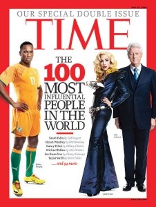 The influence of Lady Gaga– her music, her renegade style, and her philanthropic achievements– can be seen, heard, and felt all over the world: from the DJ playlist at any of New York City’s hottest nightspots, to those huge MAC billboards in Times Square, right on down to Christina Aguilera’s latest video “Not Myself Tonight”(to which E!Online’s Peter Gicas hilariously joked, “Christina Aguilera, Lady Gaga just called. She wants her video back!”). The 24-year old can now put another accomplishment under her 26-inch sequined belt: She was named the most influential entertainer in the world by “Time” Magazine in its annual 100 listing for 2010. As a singer who’s used to being surrounded by gay men, Gaga would be happy to have Elton John, Marc Jacobs, and Neil Patrick Harris on the list as well… as well as Hollywood “It Boys” Robert Pattinson, Zac Efron, and Ashton Kutcher. Oh, and by the way, the Top 100 also features Barack Obama, Edward Kennedy, Hillary and Bill Clinton, Nancy Pelosi, Oprah Winfrey, and GOP centerfold Sarah Palin. (Incidentally, Gaga’s presence on the list prompted some bloggers to sarcastically point out how the pop tart was alongside Dr. Douglas Schwartzentruber, who’s working to develop a vaccine against cancer. Debate, anyone?) The gay icon was no doubt honored thanks to her influences in gay rights, HIV/AIDS awareness, and, of course, the world of music and video art. Specifically, she reminds her peers (as well as the generations of artists before her, and young artists currently on the rise) that it’s an entertainer’s job to break the rules. The Lady’s tribute in the magazine was written by one of Gaga’s influences– Cyndi Lauper, who no doubt knows a thing or two about gay rights, HIV/AIDS awareness, and breaking the rules herself. Lauper and Gaga had recently teamed up with MAC AIDS Fund’s VIVA Glam campaign, which raised over $160 million to fight against AIDS and HIV, and bring awareness about the diseases to women around the world. Lauper writes about Gaga: “I first heard the name Lady Gaga through a mutual friend. He couldn’t stop talking about her. Then I heard about her music, and I thought, Wow, I love this kid. An artist’s job is to take a snapshot– be it through words or sound, lyrics or song– that explains what it’s like to be alive at that time. Lady Gaga’s art captures the period we’re in right now.” The Girl Who Just Wanted To Have Fun adds, “When I see someone like Gaga, I sit back in admiration. I’m inspired to pick up the torch again myself… Being around her, I felt like the dust was shaken off of me.” Wow! It’s one thing to be an influential artist. But when an performer clearly influences the movers and shakers from a generation ago who influenced her, THAT’S something to be proud of. To quote from Gaga’s latest CD, I’m “so happy I could die”!