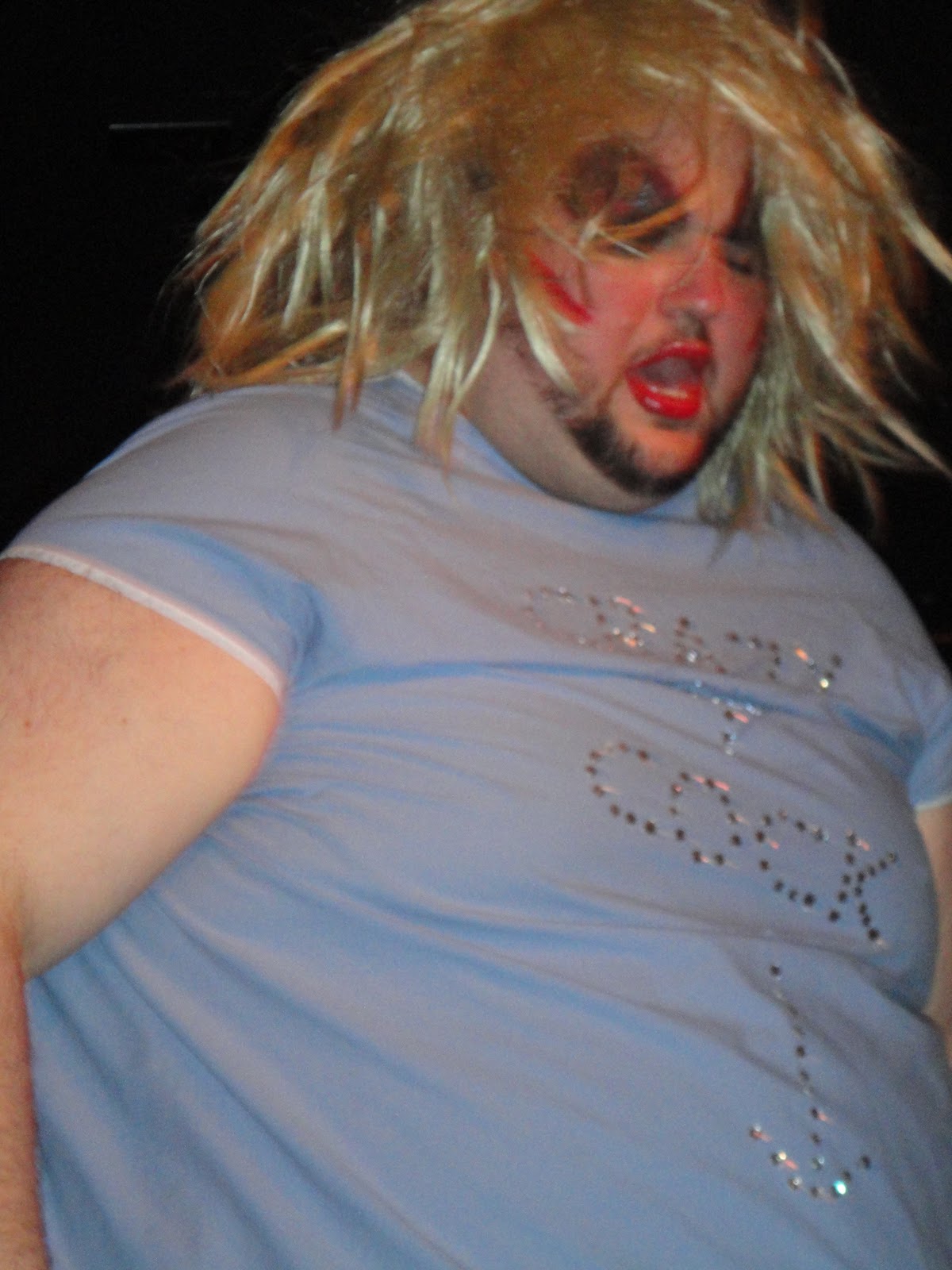 Big girls, you are beautiful! Granted, the bearded drag queens of “Fat F***ing Queen“ are more in the spirit of the fabulous Cockettes from the ‘70’s than so-called “high” drag. Put another way, the newest show by The Boys of BEAR-lesque (They are: JD, Sunshine, Sparkle, CJ, and Jay) was not just a “drag show”–it was a bountiful feast of a mod genderfuck explosion. After warming up the audience with “Macho Man” (a song that still gets my nuts rumbling after all these years), the show opened with the Boys doing a tribute to Madonna… a tribute most assuredly like no other. The guys paid homage to Madge in a few of her assorted reinventions: CJ as Madonna-in-black-lace from “Lucky Star”… JD doing Maddy-as-Marie Antoinette a la her “Vogue” performance at the 1990 MTV Video Music Awards… Sparkle as Madonna in one of her androgynous phases. From my experience through the years, I can undisputedly say that Madonna’s most crowd-pleasing song is “Like A Prayer” … and that hit wasn’t left out either. OK, OK, maybe you won’t mistake any of these guys for the ex-Mrs. Ritchie if you saw one of them walking down the street, but the sight of BEAR-lesque boy Jay coming on stage with his cone-shaped bra is worth the price of admission alone. Sparkle Southerland, the lone “lady” among these burly guys, announced, “Every faggot in the room should be happy… we just did eleven minutes of Madonna!” She’s right, of course. One of the songs in those 11 minutes was “Causin’ A Commotion”, which pretty much described the tone of the night. The Snookie in me kind of wanted to see all the Madonnas start a fight with each other… but then again, Madonna dissing Madonna would be kind of silly, wouldn’t it?