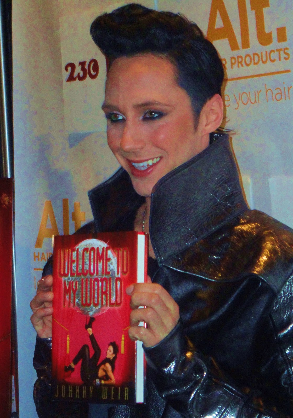 Johnny’s book is a memoir of his childhood to the present day. It was a so-called “very weird childhood“, Johnny tells us, but one that was refreshingly free from conflict or drama. (He is still close with his parents.) Weir made an early choice to concentrate on skating over riding horses. It wasn’t a slow, steady rise to representing the U.S. at the Winter Olympics, however. It was more of a zigzag, with ecstatic rises and (literally) crippling falls. It was hours, days, weeks, and years of training, and moving, and changing coaches… while enjoying an occasional tomato for dinner. This was all happening during Weir’s early 20’s, when the star also had to concurrently compete with the usual growing pains, peppered with being heckled for being “different” as a teenager and young adult. Along the way, we learn some interesting things about Johnny: He has had a lifelong affinity for Russian culture, even teaching himself the language. He boasts rock star status in Japan. And a big boost to Weir’s visibility and popularity came thanks to, of all people, Perez Hilton. Perez heavily hyped a YouTube video which showcased Johnny at one of his best moments: a collaboration with two other skaters called The Marshalls Showcase. Along the way to success, Johnny faced the unique challenge of trying to maintain his individually, dating all the way back to childhood (At age seven, he defied convention by putting streamers on the handlebars of his bike, usually territory reserved for girls.). Later on, nboth U.S. skating officials and the the media were “:shocked” at both his androgynous appearance and his renegade sense of style. In one chapter, he reveals how his costume and Christina Aguliera-inspired hair (called “disrespectful” by one official) were criticized. In retrospect, the thought of all those uptight culture vultures searching Thesaurus.com for new words for “flamboyant” must make Johnny happy…)