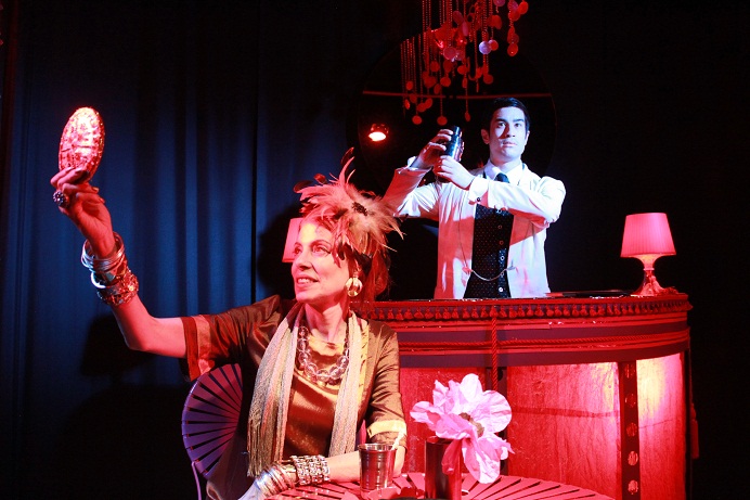 To say that the Set Designer (Master Michael Quinn) makes the most of Theater 292’s small stage is, once again, making a huge understatement. The highly stylized set is elaborate and colorful, with the stage entirely bathed in red light. In addition, some creative directorial touches really boost “In the Bar of a Tokyo Hotel” as well. In the play’s program, actor and Co-Director Regina Bartkoff recalls when she met Tennessee Williams himself when he visited a Lower East Side eatery where she was waitressing. It’s good to see that over 30 years later, Williams is visiting New York City again.
