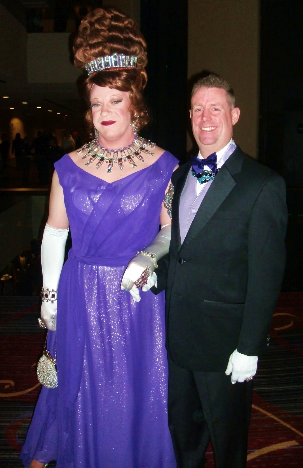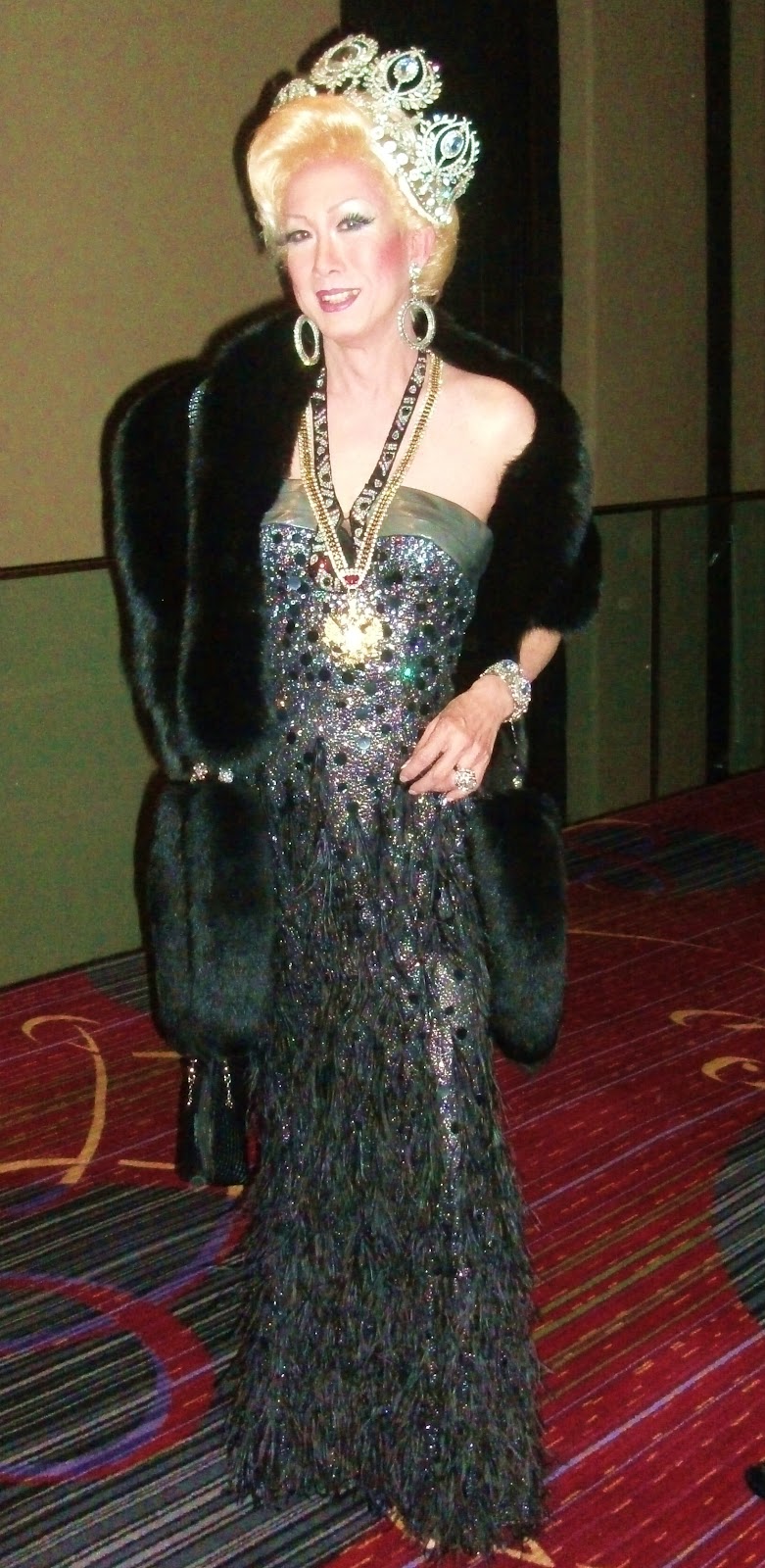 There was certainly no shortage of glitz, glamour, or gaiety at this event, which started in the evening and lasted way past midnight. The Night launched with the Presentation of the Flags and a greeting by Gary Cosgrove (H.I.M. Emperor X Gabriel Della Notte), ICNY President. Then it was on to the first Imperial Performance of the evening: “Welcome to Wonderland”, performed by The Court. It was a fittingly over-the-top choice for the ICNY’s most important night of the year. For those of you not on top of your theater trivia, that song was one of the few memorable numbers from the not-so-memorable Broadway show “Wonderland” from 2011. Indeed, it proved to be an appropriate anthem; for that night, the New York City Marriot Marquis was transformed into its own unique Wonderland: an empire populated by colorful characters and larger-than-life situations. (Mercifully, despite all the royalty, there was no Queen of Hearts demanding, “Off with their heads!”) This was a soiree where everyone who attended got to feel like bluebloods; a night where Imperial Court members from as far away as Alaska and Canada got to click cocktail glasses with New York City‘s regal family. The first Court member I spoke with was, appropriately enough, H.I.M. Empress I Sybil The First, AKA Sybil Bruncheon. She told me, “What is amazing is that so many people got caught up in the FUN of the Imperial Court. People ask ‘What is The Imperial Court?’, and I say, ‘It’s kind of like Mardi Gras, but for every OTHER city in the country.’ Whereas New Orleans has its own Mardi Gras, we have a Mardi Gras here. We elect our own Emperor and Empress, and Dukes and Duchesses, and Counts and Countesses, and Marquis, and Earls… and all the other major cities do as well. So, you have people from Seattle, Portland, Chicago, Boston, Houston… all over the country! It’s very exciting. I believe there are 83 Imperial Courts in the United States right now. Eighty-three Imperial Courts, all throwing their own Coronations and Balls. There are only 52 weeks in the year! So, there’s always a Ball going on SOMEWHERE in the United States raising money for charities. It’s cool! This is New York, and we do it well! I love the other Courts and the other Balls… but this is the one that everyone comes to every year. It’s beautiful. BEAUTIFUL! The Marriott Marquis is a wonderful hotel to hold it at. My Coronation was 26 years ago at the Ballroom of The Waldorf Astoria. But we have now been at the Marquis for many years, and it’s a wonderful, wonderful place to throw this in!”