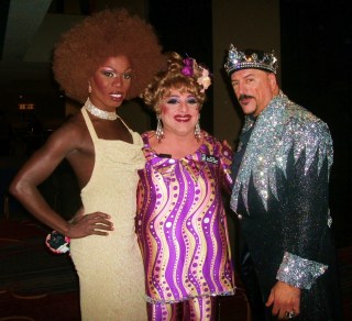Members of the Court then proceeded to walk down the red carpet alongside celebs from all venues of entertainment: TV (Miguel Allure of “Jerseylicious”, daytime drama diva Ilene Kristen), fashion (celebrity hair stylist Eric Alt), nightlife (uberpromoter Sir Mark Nelson, the omnipresent Amanda Lepore), music (singer Sir Ari Gold), and more. Attendees were treated to a wide variety of live entertainment, from a performance by the cast of “Chicago” (Amra-Faye Wright belting “All That Jazz” encircled by a troupe of shirtless men and sexy women) to the self-proclaimed “Cuntess of Comedy” (and Honorary ICNY Chair) Lisa Lampanelli. When Ms Lampanelli was asked about her affinity for the GLBT community, she responded “You know what? I thought the cornholer community enjoyed me because they feel like outcasts and so do I as a human being. And then some queens told me, ‘No, no… We just like MEAN GIRLS!’ So, either way, they still pay for tickets to my show and I’m happy!” Amen! Other performers that night included Adam Barta, Reina, Teresa Genecco, Ebonee Excell, and Sarah Atereth. Singer Kelly King, who performed the National Anthem that night, told me, “I feel I was born from the womb of a drag queen! So, I definitely feel an affinity and a kindred spirit with the drag queens. Everything I’ve learned about show business and about putting myself together comes from them. They have my heart. If only I could be one (Sigh!)… but I don’t have the parts!” Awww! Well, at least she has the voice!
