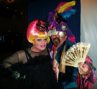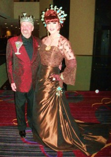 Later on that night, attendees got to enjoy one of the Night of 1,000 Gowns’ most deliciously anticipated traditions: the Venetian hour dessert buffet (That was a photo opp in itself!), which was– at the risk of overusing a common clique– fit for a king (or, more accurately, an emperor and empress!) With sweets like that, who needed dinner? But the true climax of the night was the Coronation of the new monarchs, when Emperor XX Vanity Society and Empress XXV Pepperica Swirl passed the crowns to Imperial Crown Prince Royal Ritz Kraka and Imperial Crown Princess Royale Witti Repartee. It was a unique moment which meticulously honored tradition, yet allowed the new royals to engage in a once-in-a-lifetime volcanic explosion of self-styled creativity (Pink glittery lava, anyone?) At the final hour of the night, Empress XXVI Witti Repartee summarized her feelings: “I feel fantastic. It’s been a 17-hour blur of fabulousness!” Emperor XXI Ritz Kraka added, “It was great! There were THREE HUNDRED more people than last year!”