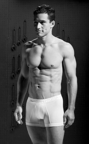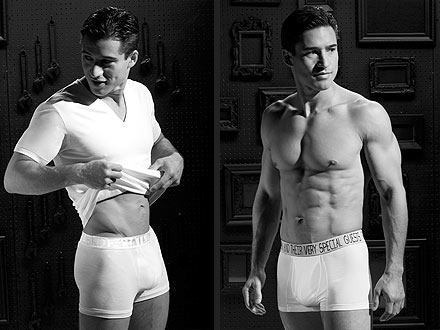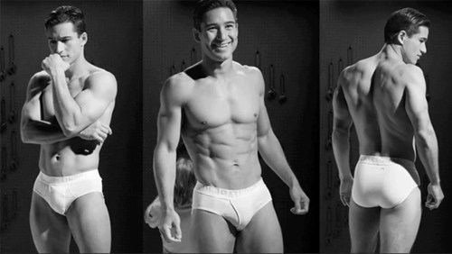 The 38-year old, honey skinned hotster really seems to be into his new role as underwear model. He single-handedly seems to be on a mission to say that’s it’s OK for mainstream male celebs to show some skin… and, more importantly, to enjoy doing so! Lopez, who is of Mexican descent, has been acting since 1984 but cemented his status in pop culture as A.C. Slater, the popular jock on “Saved By the Bell” and later “Saved By the Bell: The College Years”. Since then, it would be an undie-statement to say that his career has been eclectic. The buff star has appeared on TV as both an actor and as a host in shows like “Dancing With the Stars“, “Extra“, and “The Bold and the Beautiful“. He has also appeared on Broadway in the role of Zach in “A Chorus Line” in a 2008 revival. Lopez has written three books about nutrition and fitness, a subject he clearly knows well. The first one, “Mario Lopez Knockout Fitness“, was published in 2008. There were also two cookbooks– “Extra Lean” in 2010 and “Extra Lean Family“ in 2011. Whereas his “Saved By the Bell” days made him a sex symbol among the training bra and braces crowd, Lopez is now a symbol for equal opportunity sexiness. Looking at his photos, there seems to be a look of “I’m loving this!”, not “This is a contractual obligation!”. Lopez has clearly never been shy about showing off his body. He has said, in several interviews, that he is always walking around in his underwear (We can all be grateful for that!). In fact, it is his seriously fit bod that made him a perfect actor to irk Julian McMahon’s character in a 2006 episode of “Nip and Tuck”. Lopez plays a fellow plastic surgeon who provokes McMahon’s jealousy when his peer sees his perfect nekked body in the shower. The scene was noted for its homoerotic undertones as much as for Lopez’ bare butt. In 2008, the star appeared in “People” Magazine’s Bachelor Issue, recreating shoots made famous by previous male sex symbols, such as Burt Reynolds’ naked “Cosmopolitan” spread in 1972 and Marky Mark’s Calvin Klein underwear ad in 1992.