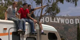 It is largely that love for Dolly that inspired brothers Gary and Larry Lane to spend almost five years writing a script, named “Full Circle”… and, more ambitiously, to deliver that script to Dolly Parton personally during Dollywood’s 25th Anniversary Celebration. One of the duo explains, “The two gifts that Dolly has given us– given the world– is (1) her music; and (2) her courage to live her life and to be herself… and that kind of gave us the inspiration and courage to write this really heartfelt script and actually be open, finally, about our lives… and to pour all our feelings into this script.” The Lane brothers are two all-American-looking, identical gay twins who were raised in a VERY religious family in North Carolina– a fact that colored every aspect of their 35 years of life. (One of the two reveals, “There’s a lot of stuff that even to this day, we can’t tell our mom.”) Today, they are living in Hollywood and hanging out with the likes of Chad Allen, Leslie Jordan, and Dustin Lance Black. Gary and Larry, along with Gary’s boyfriend Mike, rent an RV (christened “Jolene”) and kick off their five day trip… from “Hollywood to Dollywood”. Along the way, the trio encounter such forces of nature as fierce winds in Amarillo, flooding in Nashville, and the famous “Night of 1,000 Dollys” in Knoxville.