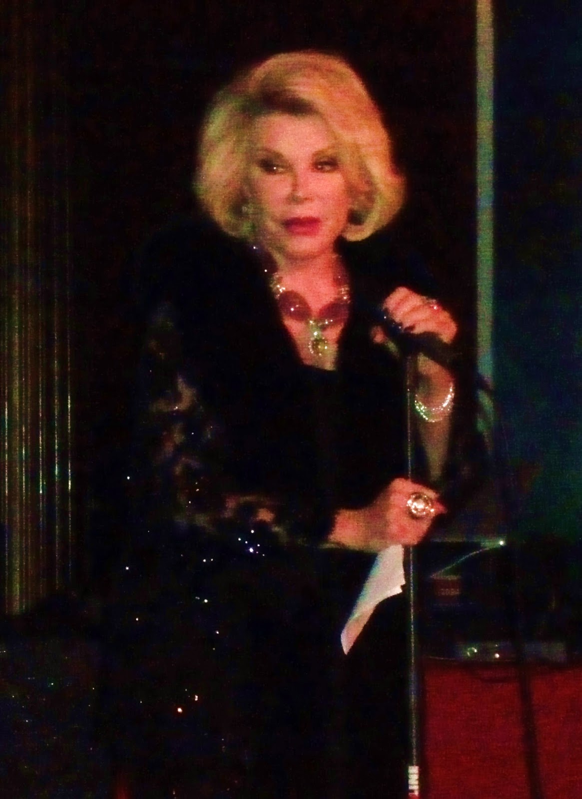 “I want to dedicate this song to Joan Rivers. It seems like every other day, she’s getting herself into hot water by making a joke that people think is inappropriate. Well, what the FUCK do you think you’re supposed to joke about?! Fun stuff?! Unicorns and rainbows?! No! You’re supposed to joke about the ugly stuff. That’s why we’re still around as a fucking race. Otherwise we’d all slit our wrists by now– so GET OVER YOURSELF!” Jackie Beat.