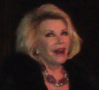 The show kicked off with Joan Rivers, who Jackie Beat works with on “Fashion Police”. After poking some deserved fun at the Kardashian sisters, Sarah McLachlan’s ASPCA commercial, and more, Ms. Rivers plugged her brand new philanthropic cause: “If any of you are in a giving mood, and obviously you are because you’re all here to give: I have a new charity that I’d like you to think about after you’ve taken care of Jackie’s fucking hips! It’s sex for older people and it’s called ‘Feels on Wheels’. We go once a month to strangers’ houses, ring the door, and just jerk ’em off! If you go and do it, please bring a book– because these men are a little older, and it takes a while.” It was then time for Jackie Beat, who declared, “Believe it or not, even though I have worked with Joan on ‘Fashion Police’ for quite a while now, she’s never seen me perform… so I picked two songs that I think she would enjoy!” One of those two songs was an oh-so-naughty spoof of Cyndi Lauper’s “biggest and most annoying hit”. Even though I’m sure Cyndi has a great sense of humor, I can’t say any more about that one except that Sammy Davis Jr. is clearly rolling over in his grave!