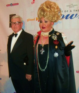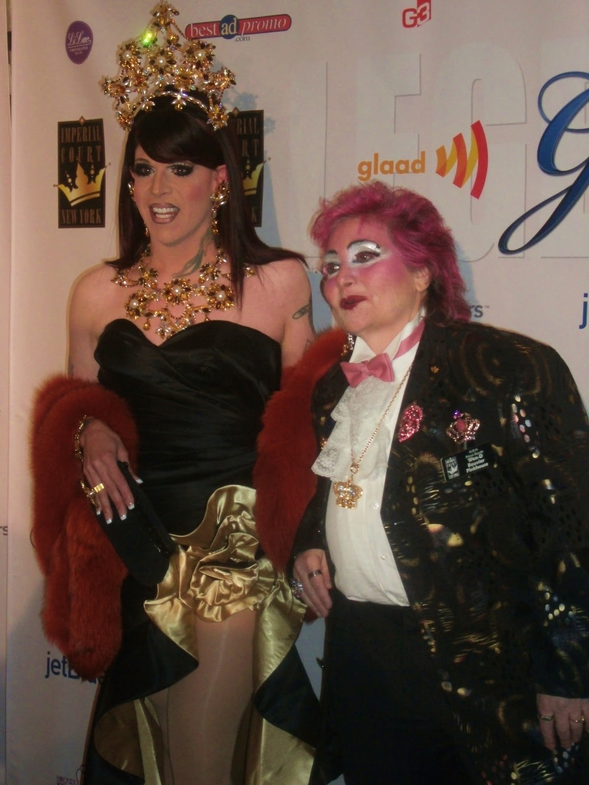 The Night of A Thousand Gowns attracts members of The Imperial Court system from all over the United States, as well as Canada. It’s an over-the-top, sensory-overloading synergy of entertainment, fashion, and most of all, self-expression and creativity. At the heart of the event, however, is philanthropy. To date, ICNY has raised millions of dollars for charity. This year, the beneficiaries were GMHC (Gay Men’s Health Crisis) and GLAAD (Gay and Lesbian Alliance Against Defamation). The Night has been famous for its envied A-list entertainment each year… but this is also a soiree when the real stars include all the attendees alongside the many celebrity guests– a night when an iconic star of stage and screen vies for eye-popping attention next to the members of The Court themselves, with all those amazing gowns, suits, and jewelery. At one point int he night, one of the lovely “Real Housewives of New York” declared, “You get some GREAT fashion advice from The Imperial Court!” It’s a night which brings together movers and shakers from the worlds of theater, music, TV, and cinema alongside supportive politicians and GLBT activists.. and how fabulousness is the common thread uniting them all.