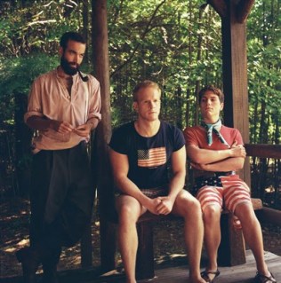 Patrick McGuinn’s new film “Leather” begins with a scene of two young boys, Andrew and Birch, going fishing in a lushly idyllic country setting of the Catskills. Fast forward 25 years, and these childhood friends are now grown men leading very different lives. Andrew (Andrew Glaszek) is now a handsome New York City native who’s partnered with Kyle (Jeremy Neal), an amiable but sometimes childlike fashion magazine writer. When Andrew learns that his father passed away, he and Kyle (along with their pet lop-eared rabbit) travel to that aforementioned picturesque upstate New York setting of Andrew’s boyhood… and find a grown-up Birch (Chris Graham) now living alone in Andrew’s isolated childhood house, far removed from the technology-obsessed city life. (Birch tells Andrew, “I don’t do electronic mail!”) Birch, now a rugged and bearded but equally handsome man (As one of the characters later says, “Birch is hot… in a ‘Little House on the Prairie’ kind of way!”) is living a simple life working as a leather craftsman. We learn that Birch was a drifter for years but had returned to Andrew’s old home and became something of an apprentice and eventually a nurse to Andrew’s aged, ill father. The reunion of Andrew and Birch cause some strong (and surprising) emotions to emerge, as well as some questions. Just what was the true relationship between Birch and Andrew’s father? How will the reappearance of Andrew, the rightful heir to the house, change Birch’s life? And how will the lives of all three characters be affected by this surprise reunion? Surrounded by the simple, bucolic beauty of the country setting that surrounds them (with just a touch of fantasy thrown in…), the three men’s lives take a journey which cumulates in an unexpected and somewhat romanticized conclusion.