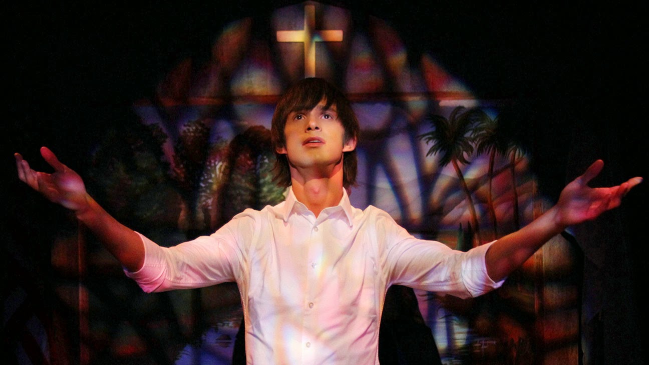“Southern Baptist Sissies” opens with what seems like a “Saturday Night Live”-style musical parody: While a preacher gives a fire-and-brimstone style sermon, four young men (Mark, Benny, TJ, and Andrew) sing a hilariously corny religious song. The quartet of young men are “four sissies in the Cavalry Baptist Church” (four out of 40 boys, incidentally…). The film chronicles the different pathways each of these boys take on their journey of self-discovery in the Southern Baptist world. It’s a world where, for example, one character who asks “How can love be wrong?” is given the deadpan answer, “Because God SAYS it is!” Even one of the boys who seems to be the most well-adjusted of the four, Benny (William Belli), speaks about how his culture is part of him: “Being raised Baptist is like some kind of chromosome or something. It’s engrained– part of my fabric, part of my makeup.” Still, Benny finds some level of transcendence in doing drag, and it is to the audience’s delight that he does. As “Iona Traylor”, Benny’s drag persona, Belli’s high-energy spiritual numbers really liven up the movie, as does the play/movie’s musical zenith, “Stained Glass Window”. Sadly, not all the boys find their niche in this story. The dramatic climax of “Southern Baptist Sissies” involves another character’s conflict of faith ultimately leading to tragic consequences.