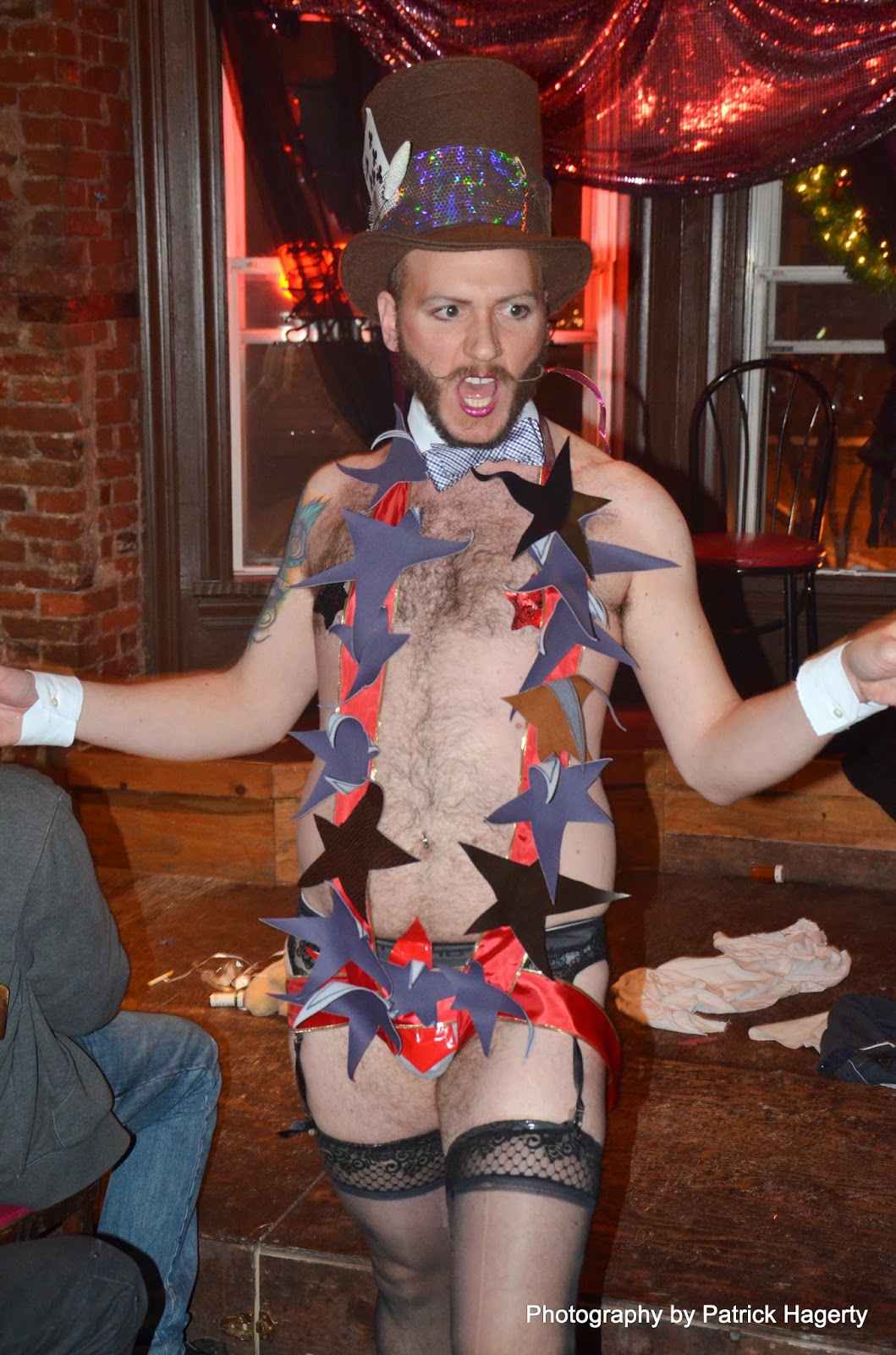 PC: Well, we have a very talent Sister Bear Pussy VonWeinermuff. She is like the Hanoi Jane of burlesque and female drag queens. She is a amazing performer and activist! Not to mention a sexpot! We also have two amazing drag queens, the first being Philly’s Premier Christian Drag Queen and an amazing comedy queen Bev! She always stops the show and will have you in stitches! The other is our very own baby drag queen Cara Kouture: She is such a rising star, so keep an eye out for her!!! And one of my favorite performs is Mika, who is a trans man! He is just so adorable and an amazing human being! I love him dearly! We have a great audience too!