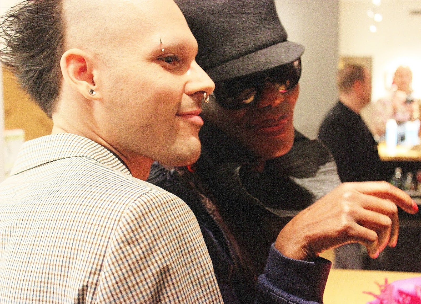 The release party for “I’ll Never Write My Memoirs ” took place at the Martin Lawrence Gallery in New York City’s Soho on Thursday, October 1st. The door opened at 9PM, but our Grace didn’t arrive until after 1AM. (The word “diva” may come to mind, but don’t ever let Grace hear you say it. She makes it quite clear in her book: “I hate that word diva. It’s been so abused! Every singer given a makeover a few weeks on a talent show seems to be called a diva these days!”) Granted, it was a fabulous atmosphere to be waiting in. In addition to the champagne and the artwork surrounding us (including works by Picasso and Grace’s friend Mr. Warhol), there were such notable New York City personalities such as Amanda Lepore, Michael Musto, and Fred Schneider of the B-52’s in attendance. True, by midnight the crowd had thinned significantly… but those who waited eventually got a grand entrance by our Guest of Honor, and were visibly delighted. Miss Jones indeed seemed to be enjoying herself as well, indulging in a libation (or two) and flirting with the many scruffy and artsy boys who braved the four hour wait on a so-called “school night”. Which again brings me back to that quote from her book: “Keep the audience waiting, and then make sure it was worth it.” Well, Miss Grace Jones, it WAS!