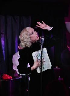 What came next was a hilariously hedonistic mix of cabaret and burlesque, complete with comedy, pageantry, sex appeal, and shrewd political and social observations throughout. And of course, there’s the music! Adorned by her band (Ric Becker on trombone, Marty Isenberg on bass, and Maria Dessena doing double duty on accordion and piano), we were treated to a selection of musical gems just waiting to be reheard and reinterpreted. Almost all of them are from the late 20’s and early ’30’s. The show’s opener, “Life’s A Swindle” by Spoliansky and Schiffer, holds a rhinestone-framed mirror to modern humanity’s greatest love affair of all: the love of… money! (The song even name-drops Donald Trump!) It shows that some love affairs are truly eternal. “Das Gesellschaftslied”, translated as “The A-List Song” (Spoliansky and Schwabach) from 1931, is truly priceless: a timeless gem which, given our media’s obsession with “image”, is more relevant than ever in 2016. Other songs are a celebration of sexuality, feminism, and queer equality. Even those in the know about GLBT history will probably learn some new cultural facts: “Das Lila Lied” (translated as “The Lavender Song”, by Spoliansky and Schwabach), from 1921, is considered to be one of the first gay pride songs ever written. Later on, Mad Jenny turns “When That Special Girlfriend” (Spoliansky and Schiffer), from 1928, into a deliciously decadent lesbian love song. “Raus mit den Männern” (Hollaender and Waldoff), translated to “Chuck Out the Men”, from 1926, is performed with feminist gusto, albeit tongue-in-cheek: