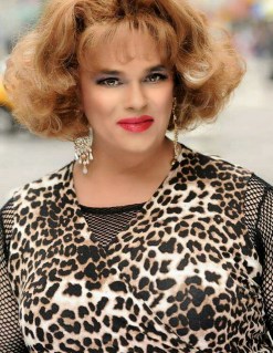 By now you may be expecting me to introduce the man underneath the wig and dress sets.  However, there’s no alter ego sharing a body with Reverend Yolanda.  Although she takes no offense to the terms “drag queen” or “transgendered”, the artist born as Roger Anthony Mapes prefers the term “genderqueer”.  She clarifies that “drag” often implies playing a character, and “transgender” is more commonly used to describe people seeking to live as their identified rather than biological gender.  The singer tells me, “I don’t call myself a drag queen.  Yolanda is not a character to me.  Yolanda is truly my authentic self, no matter how I’m dressed.  I don’t consider myself male, but I don’t consider myself female either.  But for convenience’s sake: When I’m in a wig and heels, you can call me ‘she’.  When I’m not, you can call me ‘he’.  To me, it makes sense and it makes it easier for people.  I prefer the ‘she’ over the ‘he’ in general.  But I don’t want to be confusing for people.  When they ask me, I try to explain it to them… but sometimes they still just don’t get it!  What I have come to understand is that I am truly a  person who lives in the middle.  Call me ‘Yolanda’, regardless of how I am dressed!  I don’t ever want to take away the binary male or binary female.  That’s not my intention.  But there’s a lot of range between the two.  When I lived in Vermont in the ’90’s, a group of people and I helped to change Vermont to make it safe for transgendered people to walk the streets.  Today, the kids there don’t even know who I am… but when I first moved to Burlington, I’d walk the streets fully dressed.  I’d get catcalls, and people would come after me and all that kind of stuff.  Today, it’s safe to walk the streets.  Transgender people move to Vermont because they know it’s safe to live there.  And I was a part of that!  It’s incredible.  I didn’t know I was ‘doing anything’.  I was just being myself, wrapping myself up with plastic and walking around Church Street in Burlington in glitter and makeup trying to look like Divine.  But because of those things that we did in Burlington in the ’90’s, it really shaped the LGBTQ movement there.  I’m just so proud to be a part of that history!”