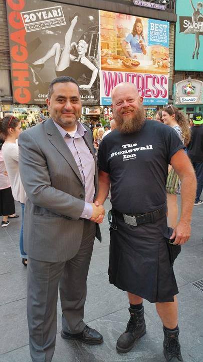 “So often we run to the government as our savior. Pull back a little bit. With DOMA (Defense of Marriage Act), who was the adversary to us exercising our right to marry? It was Congress. It was the government. Right now, there’s the whole transgender bathroom issue. McSorley’s Old Ale House in New York City has figured out how to have people in a bathroom without a problem for decades. Target has figured it out. Individual businesses have figured it out. Who is the problem? It’s the State of North Carolina, saying, ‘You can’t do this! You have to do THIS instead.’ Look back to when blacks and whites couldn’t marry. Who was the problem? The government. We run to the government for the answer, when many times they are the problem. They are always, sadly, behind the times. At the rally, I wore my Stonewall Inn T-shirt. Think back to those incidents that sparked the Stonewall riots in . It was a reaction against the agents of the State who were sent there to harass gay people. The State is almost always the problem because they have power and authority. They can jail, fine, confront, or arrest you. They have been the problem, not the savior.”