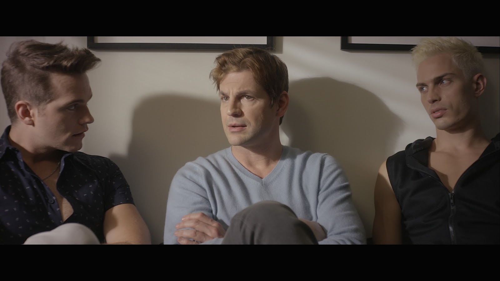 Like director Casper Andreas‘ other movies (Going Down in LA-LA Land, The Big Gay Musical, Violet Tendencies), Kiss Me, Kill Me has the director’s unapologetically queer sensibility. His films are especially popular at LGBTQ film festivals, largely because he is skilled at holding a rhinestone-framed mirror up to gay male culture while gently parodying that culture at the same time. The director knows what his audience wants, even if that audience won’t always admit it. Put another way, Andreas generously delivers the guilty pleasures. He also has found a cinematic kindred spirit with screenwriter/fellow producer David Michael Barrett, whose script features an all-you-can-eat buffet of priceless dialogue and potent situations.