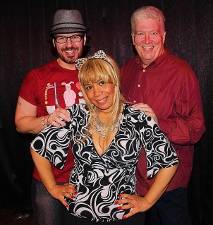 Sorry, I’m just bitch-ing. And while we’re on the subject… In case you didn’t gather from its name, 2 Queers & A Bitch, which both shocked and delighted audiences at Manhattan’s beloved cabaret hotspot Don’t Tell Mama on Friday, December 9th, was NOT your grandma’s Christmas show. That is unless, of course, your grandma would dig jokes about anal sex and enjoy a poem by Tym Moss called A Bisexual on the D.L.’s ‘Twas The Night Before Christmas’. How many holiday shows can brag about being sponsored by Uberlube, the self-described “luxury lubricant” which not only makes sex better, but can also tame that nasty frizz and condition those yucky split ends? (As Mr. Moss pointed out, “Use it on your hair to go out and find that man, and then go home and use it again to keep him!”) And who needs the Three Kings when you have Moss, Ike Avelli, and Robynne Kammil holding royal court? 2 Queers & A Bitch offers a variety show full of comedy, music, videos, an audience participation lip sync-a-thon/wig show, and… gift bags! Yes, you heard that right: There was free shee-at, people!