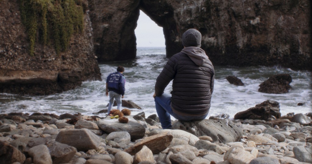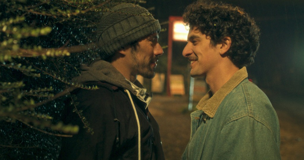 If you have figured out so far that there’s just a simple love story between two men at the heart of Zúñiga’s multiple award-winning film, you’d be right. That said, very rarely has a simple love story between two men been conceived and filmed with such dedication to atmospheric splendor, such an aura of feverish romanticism, and so much achingly lovely symbolism (starting with the movie’s title itself). True, Zúñiga had the natural beauty of southern Chile at his service, complete with the organic music of waves crashing and seagulls calling… but the way the director utilizes that natural beauty is no less than flawless. Even with such simple scenes as a camera pan through a grassy field or a bird’s-eye view of the two men riding bicycles through a sleepy country highway, every moment seems meticulously thought out, framed, and shot with love. Just as the audience can almost feel the cool moist Chilean air when the boyfriends are hunting for sea urchins, the detail to atmosphere extends into the interior scenes as well. We can almost smell the fumes of cerveza permeating the secondhand air of the crowded local bar, and feel the testosterone-fueled heat when Lucas and Antonio steal some “besos” in the car while bathed in red light.