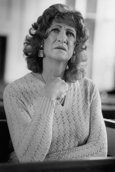 “Transformations” is composed entirely of portraits of cross-dressing men, occasionally photographed with their wives or children. All the portraits were taken in the late 1970’s or ’80’s. The exhibit had its origins when Allen, who stated that her choice of photographic subjects is “people in their own environment”, had produced a portfolio of 11 dye transfer prints to coincide with the release of her first book, 1989’s Transformations: Crossdressers and Those Who Love Them. The book depicted the lives of heterosexual, married men who wore women’s clothes. As Allen states, “I guess you could say that I was ahead of my time. I created a book that they finally could identify with. All the visual material up until then were either to be found in porn shops, which they did not identify with; or in medical manuals, which they also didn’t identify with.” In that book, Allen included black-and-white portraits as well as interviews of her subjects. “Transformations” the art show was originally exhibited 30 years ago in January 1990 at the Simon Lowinsky Gallery in New York City. The new exhibition at ClampArt includes the complete portfolio of color vintage prints. ClampArt’s show also includes a selection of black-and-white prints by Allen shot in the same era.