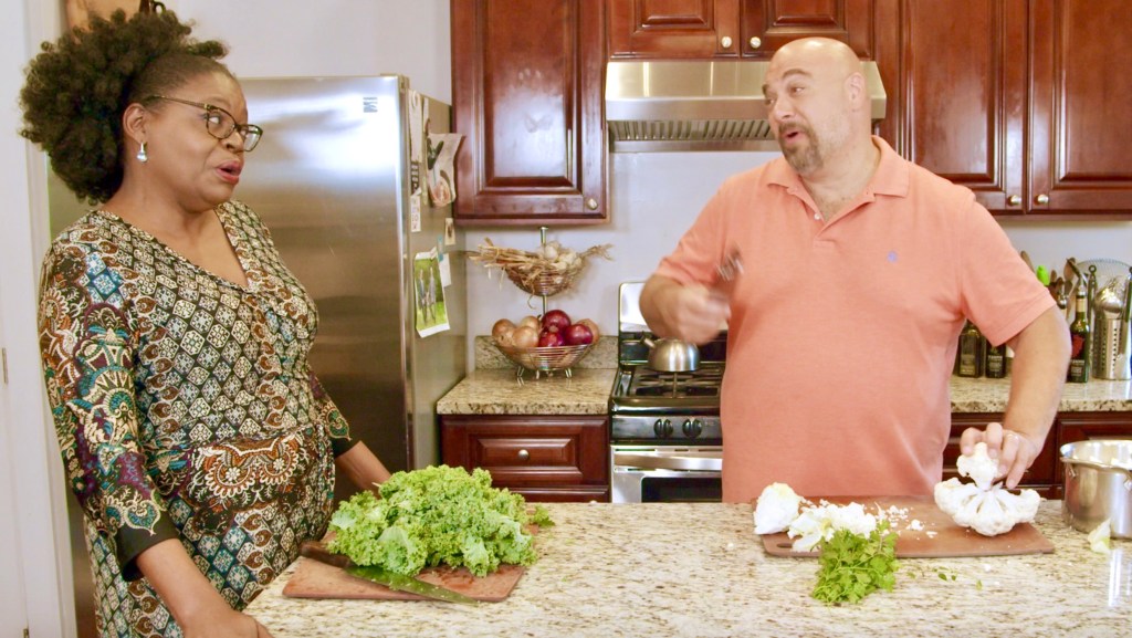 JB: Well, I certainly haven’t been in the room when her books are getting put together, but I know that part of the industry is that you have professional chefs preparing these dishes, and you have “food stylists” in the room. I talked to a friend recently (Amy Riolo, who is in Episode Five of the show) who said that in one book she was involved with, they did eight photographs. Each photograph took a day of work. The author of that book did none of the cooking. She was in the room, but they brought in someone to cook. They brought in someone else to “style” it. There’s a photographer, and lights, and everything else. I have self-published all of my own books. I just kind of stumbled into it, but I now it is something I do very deliberately because I like the creative control. Because I’m self-published, I didn’t have a budget. I had a friend who was taking photographs at the time, and he was photographing the food right after I finished cooking it and right before we sat down to eat it. So, in all of my books and on my TV show, I am proud to say that this is real food. If you follow the directions, your plate can look like this! I think it was important with the show for the audience to feel like they are in the room with us. It is real food in real time. There were no swap outs. Obviously we cut out some of the boring parts, but you’re watching the process of the dish from start to finish. After the camera turned off, our producer and filming crew all sat down at the table and ate the food that we had just prepared on camera. So even the process you are seeing is the real process. It is real food with real people in real time.