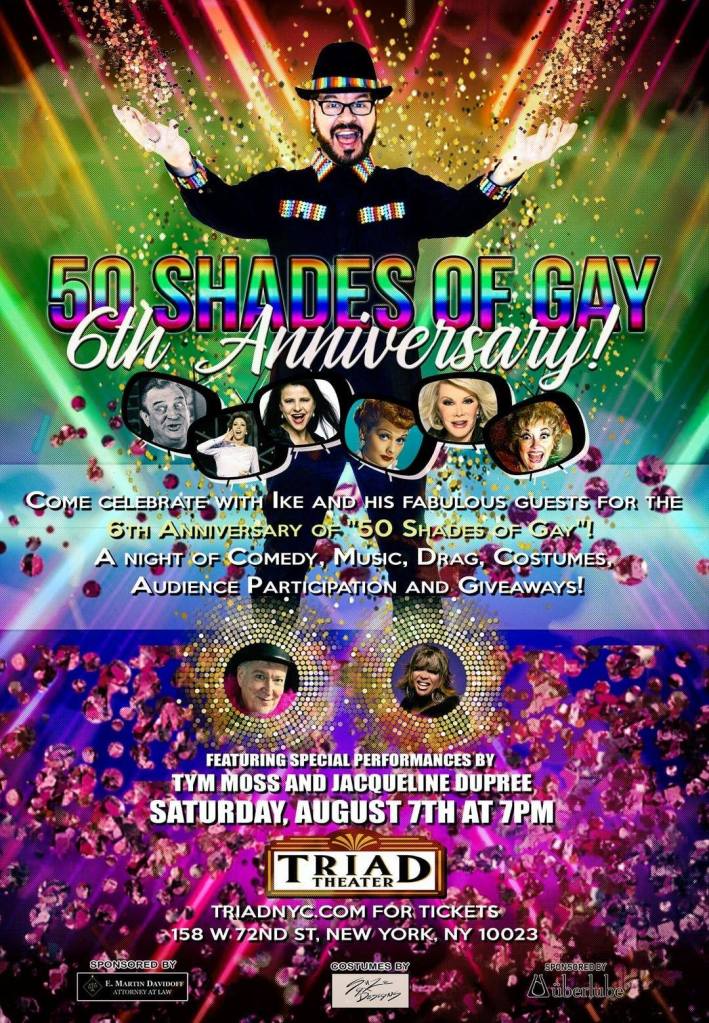 Ike Avelli’s 50 Shades of Gay, 6th Anniversary is Saturday, August 7th, 7PM at New York City’s Triad Theatre, 158 W 72nd St. Visit here for tickets. You can also visit Ike on Facebook, Instagram, or at his official website.