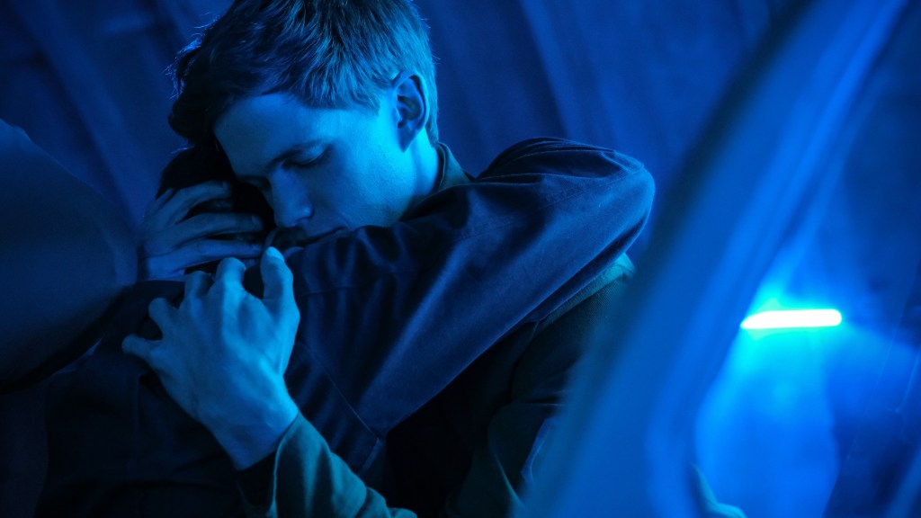 One year after finishing his service, Sergey– with his military haircut grown out– finds himself living a very different life as a theater student in Moscow, studying Shakespeare and dancing to Boney M’s Ra Ra Rasputin with his equally creative fellow students. Roman, still in the military, has married Luisa, ostensibly to protect the men’s affair from being exposed. Nevertheless, Sergei and Roman create their own unorthodox union of sorts, even stealing away for a gorgeously filmed seaside outing, with the supersaturated blue sky and water and sunkissed beach forming quite a contrast from the gray-tinged scenes from the military base. But what happens next? In a scene set in 1979 (which would ultimately be prophetic in our current era), the audience catches a TV news snippet about the start of the Soviet-Afghan War, an event that would ultimately impact the life of all three of the main characters.
