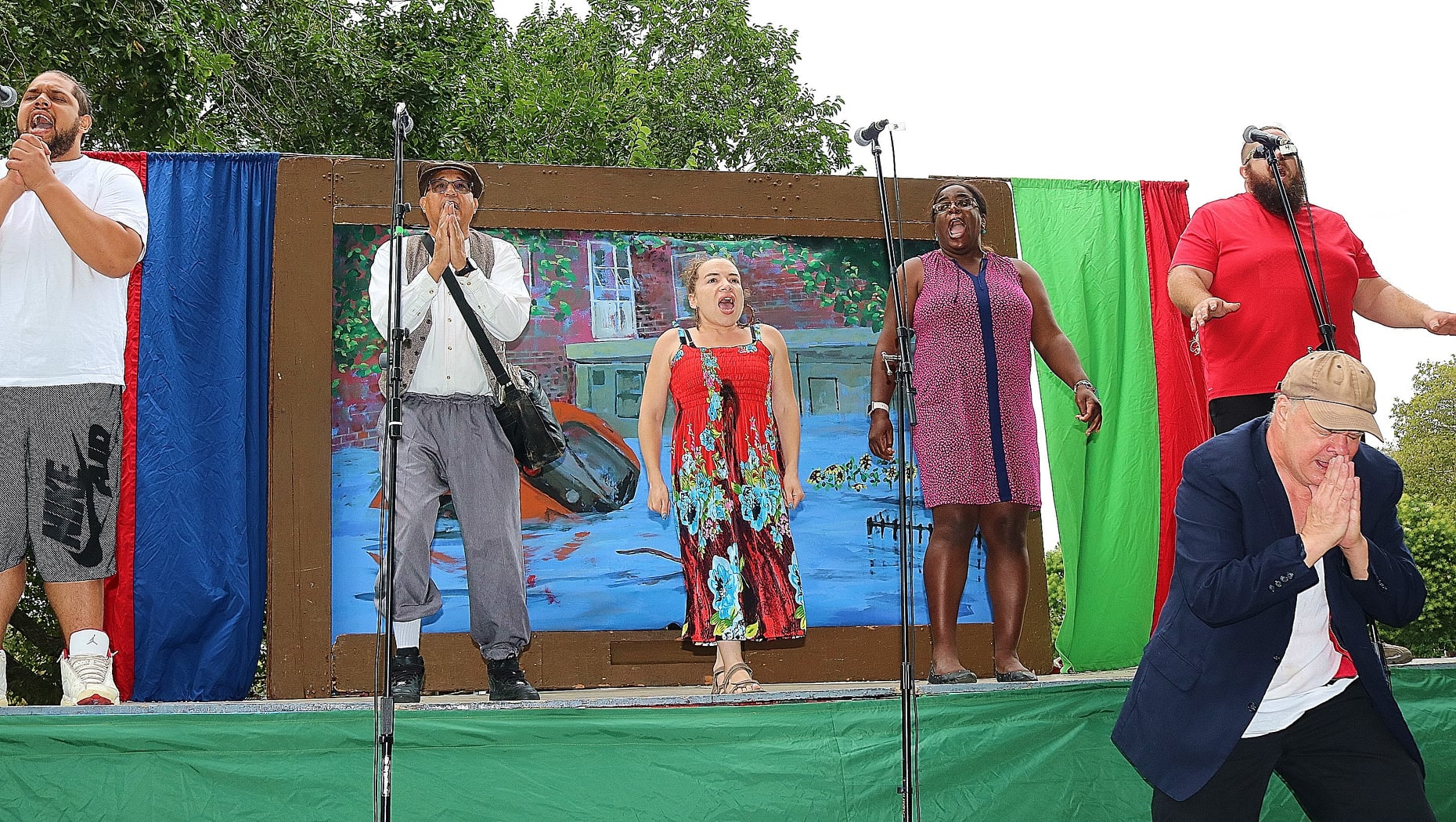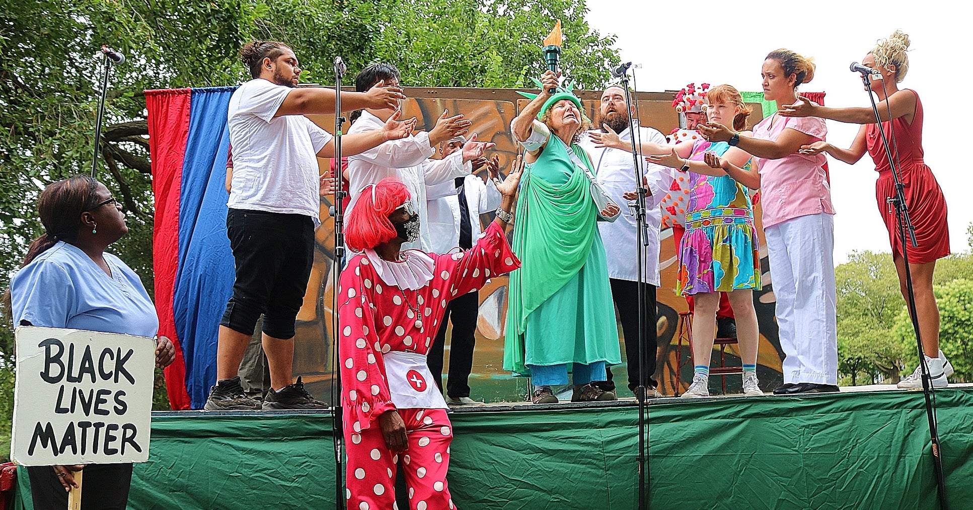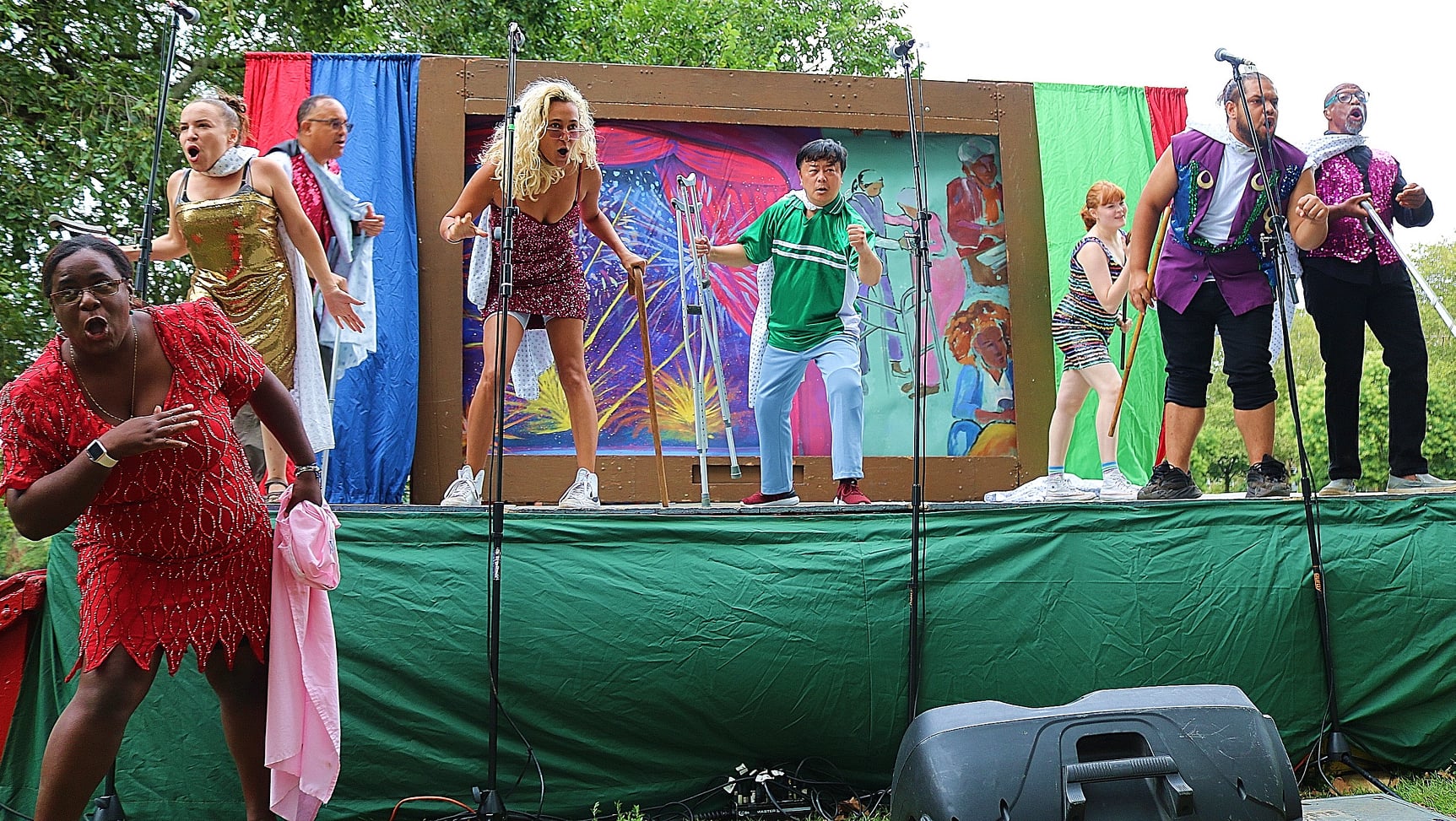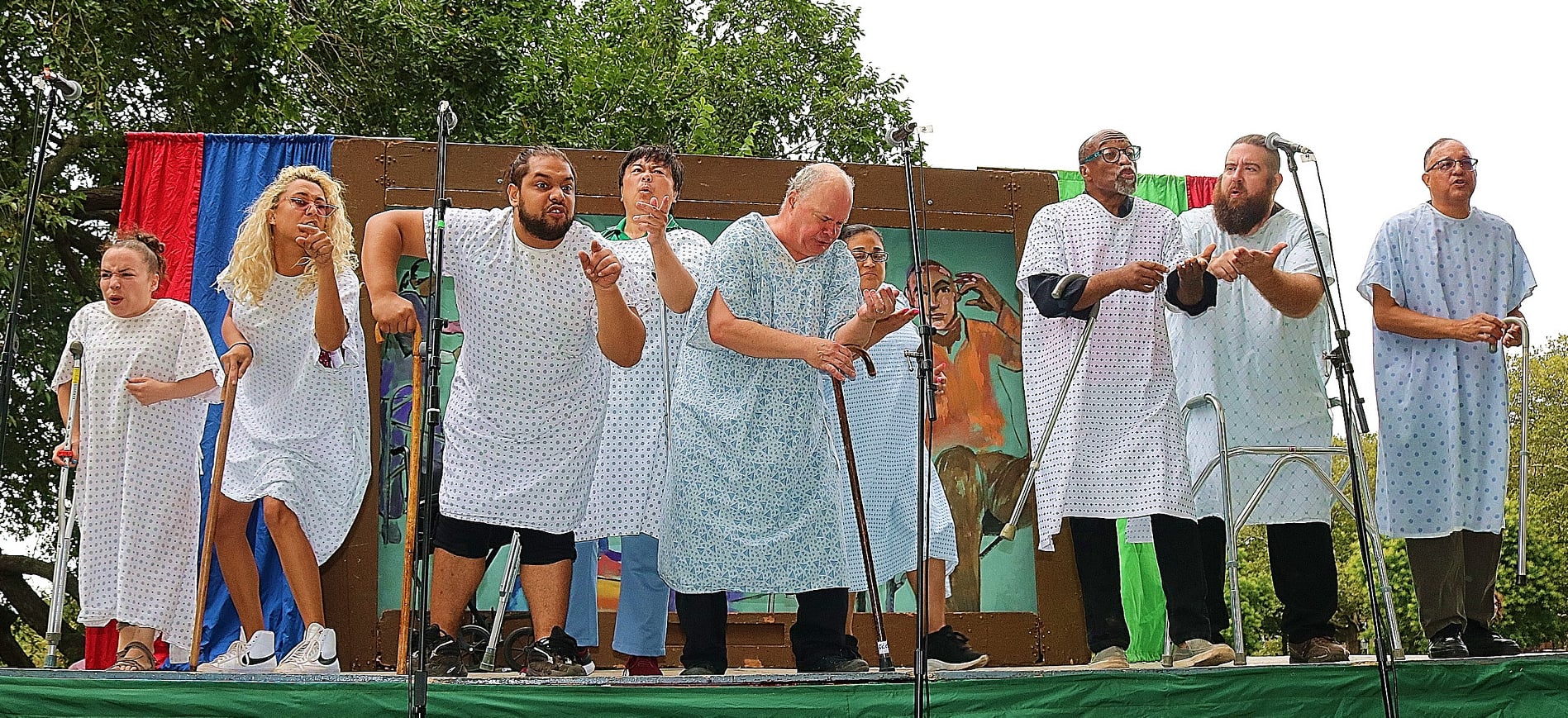 Theater for the New City (TNC)’s new musical Critical Care, or Rehearsals For a Nurse, was patently conceived to be performed at assorted outdoor spaces in all five boroughs of New York City during the summer of 2021. The “takin’ it to the streets” plan couldn’t be more appropriate, because this delightful piece– in addition to being humorous, provocative, and culturally significant on many levels — is truly a love letter to our beloved hometown, written in an infinite variety of multi-colored inks. Everything about Critical Care, or Rehearsals For a Nurse feels affectionately authentic, from the large, diverse cast to the lyrics in songs like NYCHA Housing (Yes, there IS a song called NYCHA Housing!):