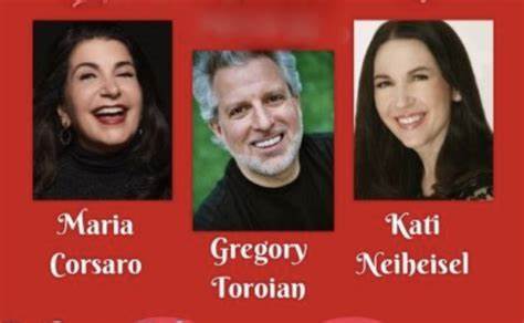 Neiheisel and Corsaro have distinctly unique vocal domains. Neiheisel’s higher range evokes the vibe of two lovers holding hands while walking through Central Park on a fall day with leaves dropping from the sky. This is one of the reasons her jazzy version of the classic Let’s Fall in Love works so well, or why the combination of Kati’s voice and the irresistibly eternal lyrics of Be Anything combine to create sheer musical perfection. Corsaro’s deeper style inspires a romantic candlelit dinner when the sun goes down, as with her delivery of You Don’t Know Me— a number which, for the record, I have always believed to be one of the most feverishly romantic songs ever created. Corsaro, who at times sounds astonishingly like pop singer Roberta Flack, can also convey the more challenging side of L-O-V-E as well, such as when she teams up with Toroian for the somber How Do You Keep the Music Playing? That said, Kati is more than capable of evoking sensuality, as evidenced by her delivery of The Moon Was Yellow or Aznavour’s/Kretzmer’s She (Done as “He“.). Maria, in turn, can get very playful, as she shows us with the jazzy Exactly Like You. As mentioned before, the moments of Kati and Maria singing together are truly wondrous. The two first combined forces with the show’s opener, a Valentine’s Day musical montage. At the show’s closure, the duo sent the audience home with the famous lyric, “Our leave is here to STAAAAAY!”. It was clearly a musical V-Day card to their fans, and no less than sheer delight.