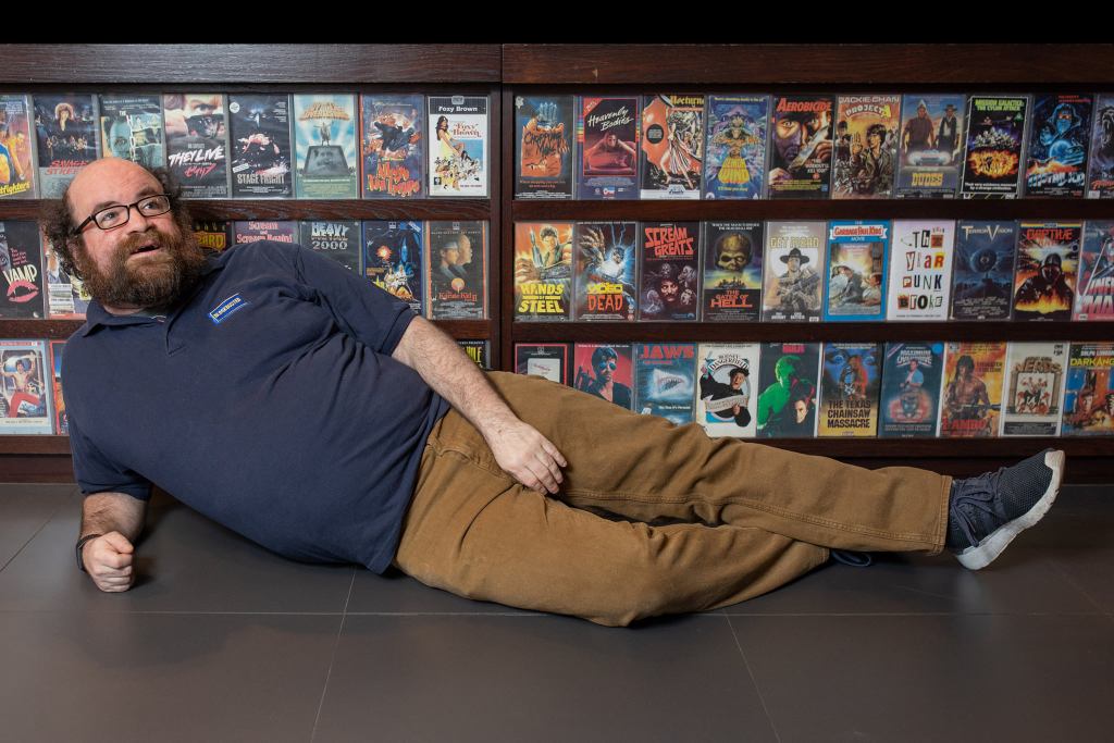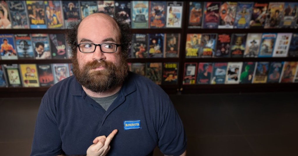 A gifted performance artist and storyteller, Mark’s love for all things cinematic started as a child of the ’90’s, when renting movies from a relatively new store named Blockbuster (Both Blockbuster and Mark were born in 1985.) was still a Friday night family affair. His options were limited to movies rated “PG”, with his parents’ permission of course. (Here’s a fascinating piece of trivia: Mark’s first R-rated rental was… Con-Air starring Nicholas Cage!) In young adulthood, Mark found the perfect way to embrace his cinephilic calling. As a college student, he started working at Blockbuster Video in the small town of Palatka, Florida (population 10,446…), where he really found a sense of identity. It was there that he became a celebrity of sorts. What was Mark’s nickname? Two guesses won’t be necessary: He was well-known as …“Blockbuster Guy”! Fast forward to 2022, and Blockbuster Guy, Levy’s Award-winning one-man show, has been revived as one of the highlights of the 2022 Frigid Festival at The Kraine Theatre in New York City’s East Village. Levy’s Blockbuster Guy, directed by Kristen Keim, is a funny and smart piece of nostalgia, both personally for the artist himself as well as for everyone who remembers those laminated blue membership cards or the irreplicable thrill of invading the store’s wall of “New Releases (!)” every Tuesday morning.