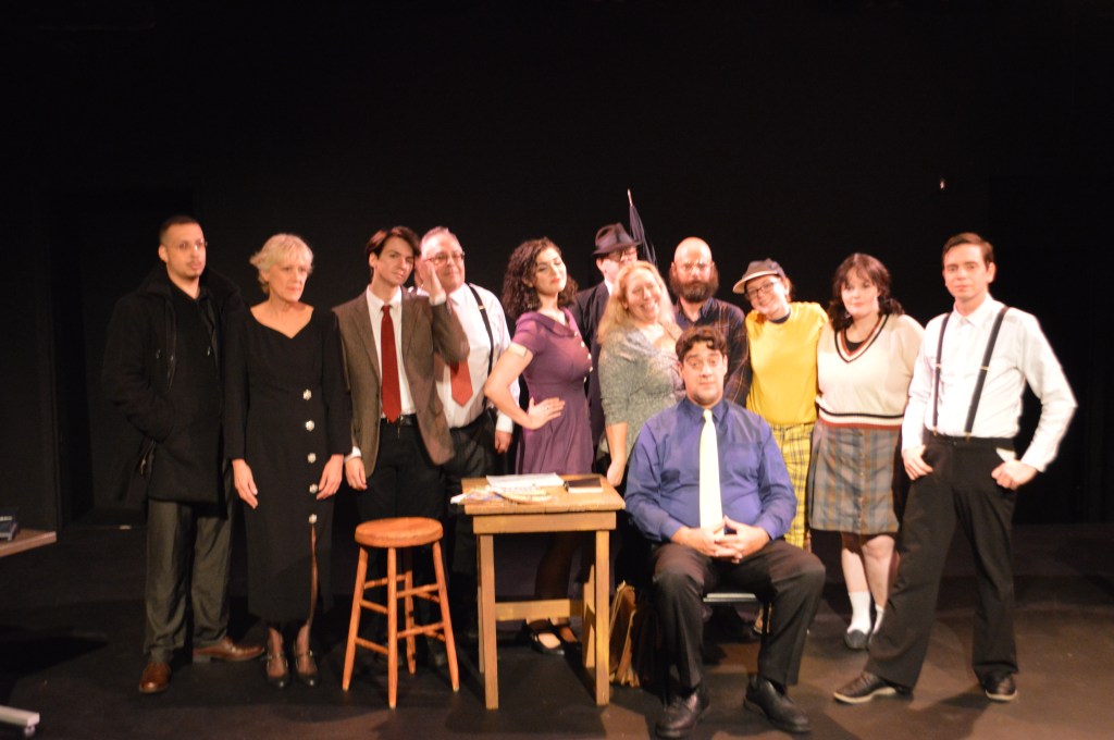 Bill Finger: Rise of the Bat continues at The Chain Theatre, 312 West 36th Street, Fourth Floor, New York City on October 4th and 5th at 8PM. The play is presented by Daydream Theatre Company, RISE Playhouse, and Producer Aaron Andrade. Tickets are available for $15 online and $20 at the door and may be purchased here. Poster by Arlen Schumer. Photo of cast with Athena Finger by Duncan Pflaster.