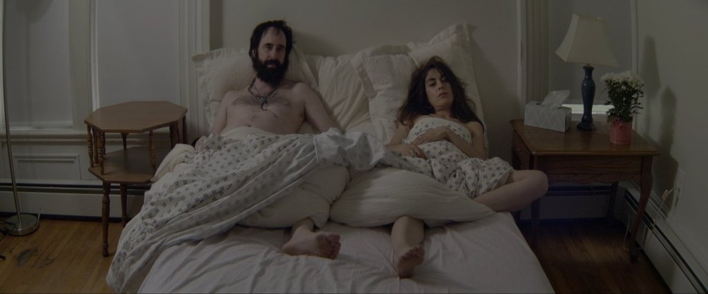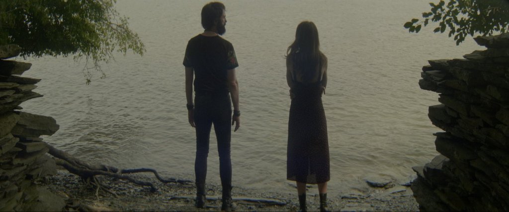 The plot for Poughkeepsie is for Lovers is hinted at with the movie’s Rorschach test-style opening credits.  These animated visuals are combined with haunting music — which sounds, prophetically, somewhat post-apocalyptic.  We then meet the movie’s titular lovers.  Watching the news on TV in the bedroom of their Brooklyn apartment, Charles asks Eve, “Is it weird watching a nuclear explosion right after we’ve had sex?” Eve answers, without a vestige of irony, “That’s just what life is now.”  For almost the entire rest of the movie, the only other humans we encounter are via voice only: the endless, albeit slowly dwindling, announcements of an escalating nuclear war with Russia.  At the suggestion of the government, the couple flee to a friend’s weekend home in Poughkeepsie.  As beautiful as their new surroundings are, however, things are going from bad to worse. Food, gas, and other essentials are dwindling.  Travel has become impossible. Mass hysteria seems to be taking over.  Relationships become strained. Eventually, there are orders to stay inside in the interest of safety.  Sound familiar?  Maybe… but the threat that looms over the heads of Charles and Eve would make the 2020 pandemic look like a flat tire.  The end of THIS crisis, after all, could quite literally be THE END– and in the words of one of the characters, “It could happen to us any time now.”  Charles cannot reach his six-year-old son, while Eve worries about her aging parents.  How do the two deal with the inevitable danger creeping up on them? With his many reflections on religion, we believe that Charles’ unyielding faith is a major factor.  Eve. meanwhile, seems to cope with life through unyielding realism, such as when she tells Charles, “I don’t know how to wait for the bombs to come…”  Is Charles’ strong faith, Eve’s pragmatic outlook, and their unique devotion to each other enough to save them?