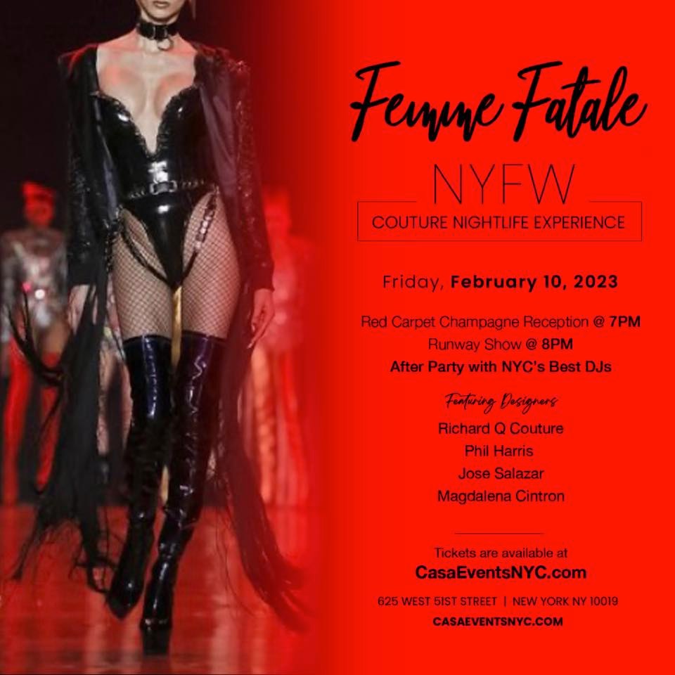 On Friday, February 10th, legendary New York City hotspot The Copa celebrated New York Fashion Week (NWFW) 2023 with Femme Fatale. a seductive runway extravaganza featuring four exciting designers: Richard Q Couture, Phil Harris, Jose Salazar, and Magdalena Cintron creatively curated by innovator and owner of Casa Events, Camille Cabrera.