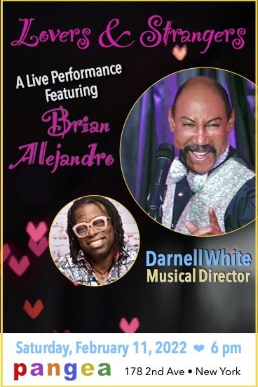 The first song in Lord Brian Alejandro’s dazzling one-man show Lovers & Strangers was the eternal hit This Could Be the Start of Something Big, which has been done by the likes of such heavy hitters as Ella Fitzgerald, Bobby Darin, and… Steve & Eydie! For the audience at New York City’s Pangea on Saturday, February 11th, this would turn out to be a prophetic choice of song. (In honor of the venue, the singer cleverly changed the “Sardi’s” in the famous lyrics to “Pangea“!) How many times have we heard that old bit of wisdom, “You never get a second chance to make a first impression?” Well, let’s just say that this dynamic performer more than fulfilled his promise to any new fans in attendance that night. During his initial entrance to the stage, Brian weaved throughout the sold-out crowd, giving many lucky audience members the feeling that he was singing just for them that evening. Barely five minutes into the show, this Lord’s joy of performing had already come through in many ways, including body language and eye contact. It may seem rote to say that a performer smiles with their eyes, but this is one entertainer who has “smizing”, as the kids say, down to an advanced art form. With Brian Alejandro dressed in a tuxedo and adorned with red sequins, we got the feeling that this musical appetizer for Valentine’s Day would be more “penthouse and champagne” than “motel and six pack”…
