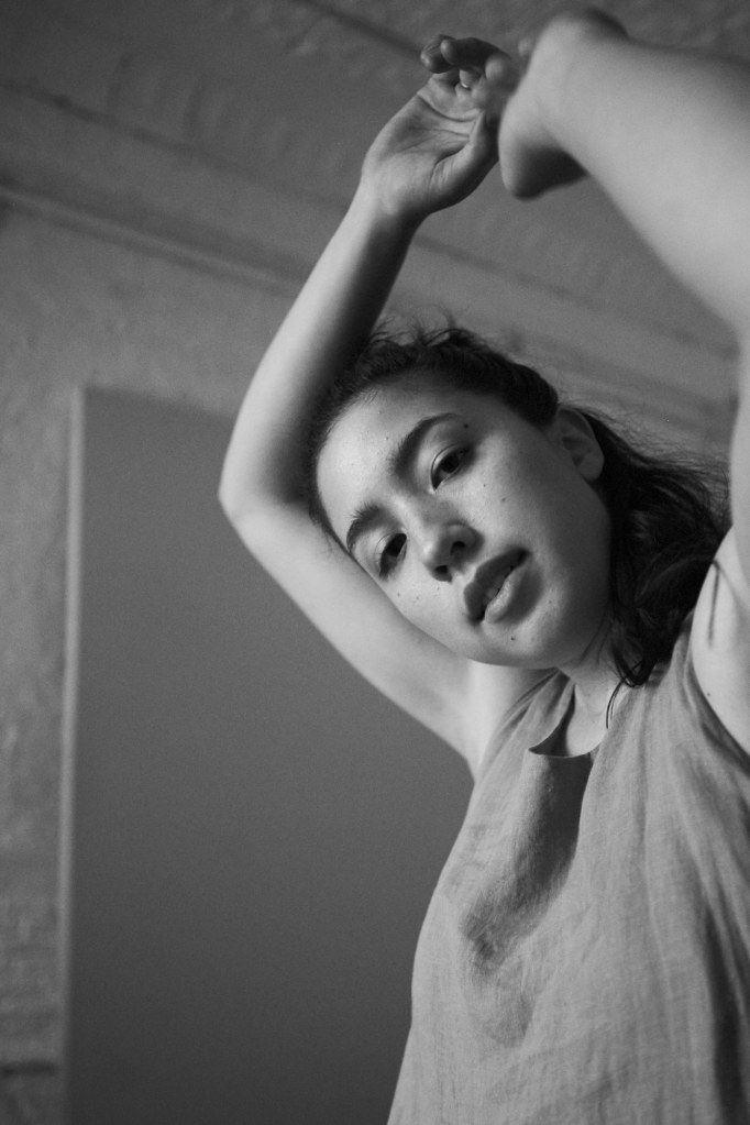 The evening concluded with Blue Bardo, choreographed and performed by Kim Savarino. Savarino’s provocative piece is a dance/theater exploration of family and of evolving perceptions of death and loss– some of which come to us when we least expect it. Blue Bardo comes into focus, and really affects the audience, when Savarino shares two true stories originating from her own large extended family. The first is about a “celebration of life” party which the artist’s great-aunt Edna threw for herself before dying of cancer. In contrast, Savarino tells a parallel tragic story of another relative’s death– but this one was quite unexpected. Without giving away too many details, it involved an incident in Monterey Park, California, at the Lunar New Year: an incident which gained national attention. It is Savarino’s candid sharing of how these incidents affected her outlook on life (and, unintentionally, on death) that really pulls at the audience’s emotions.