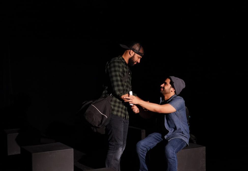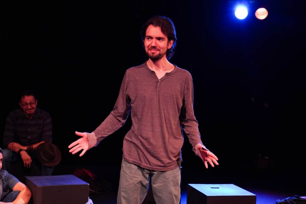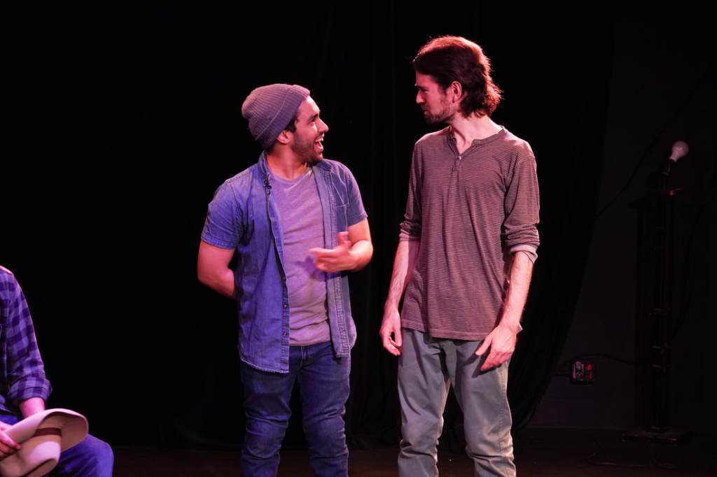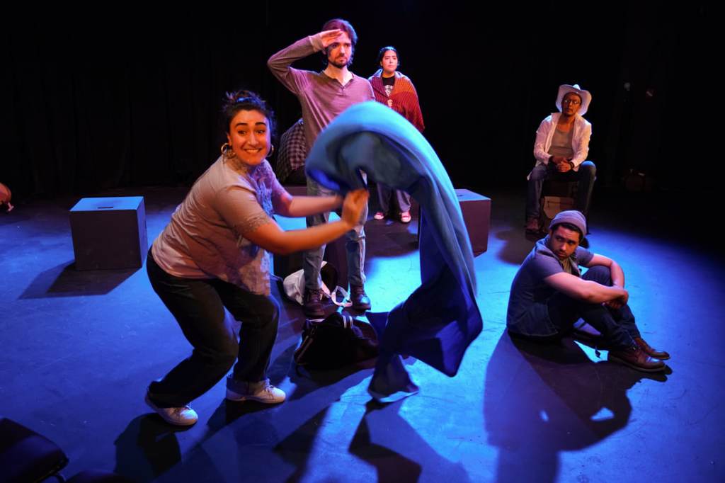 Eight Tales of Pedro introduces the audience to its characters, who are en route to an unnamed destination. Thrown together by fate, the four men (Felipe [Richard E. Calvache], Rene [Federico Mallet], Alfonso [Andy Price], and Peter [Stephen Santana]) and two women (Genoveva [Paulina de la Parra] and Escolastica [Maria Renee Lavalle]) become a fast family of sorts. One character declares early on, “We should all introduce ourselves. It’s going to be a long trip!” While these strangers on a van are initially somewhat wary, they soon warm up to each other. Likewise, thanks to the charisma and acting talents of the performers, the audience quickly warms up to the characters as well. We legitimately care about their experiences and are drawn into the stories they tell, becoming fascinated with the journey of the play’s titular “Pedro” (brought to life, via story, largely thanks to Andy Price’s Alfonso.) from “bebé” to the original “bad hombre”.