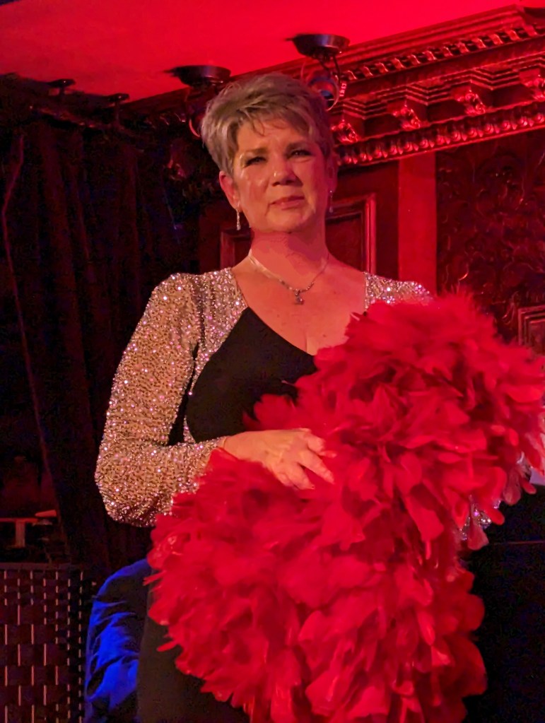 In a performance featuring many, many, MANY precious moments of music and storytelling, perhaps the most emblematic of those moments came when Matsuki asked the audience to raise their hands if they knew Julie Wilson and/or were inspired by her. Given the vast number of cabaret dignitaries in attendance that evening (More about that later…), it was perhaps no surprise that a lot of hands were raised. Younger generations may need to be reminded that Wilson was a big star back in gentler times, having appeared in several movies, on TV, and of course on the stage. But many of the people in the audience remember the performer from the, shall we say, “evening” of her life, where she remained a huge supporter of the newer generations of singers. Her social life rivaled many people one third her age; She attended many cabaret shows in her beloved New York. While increasingly frail in stature, her aura was unmistakably mighty, as if she was surrounded by a force field of her own intense, well-earned artistic legacy; She no longer had to “prove” anything. Ms. Wilson also never drifted away from her trademark elegance and class. An acclaimed singer in her own right, Sue Matsuki pointed out that singers sometimes have to EARN the right to sing certain songs, and shouldn’t attempt to “take on” those songs until they are ready– even if it takes decades. In Sue’s case, the song was Send in the Clowns, which needs no description. Let’s just say that it was well worth the wait! Adorned perfectly by Toroian’s piano, this selection brought 54 Below to absolute silence.