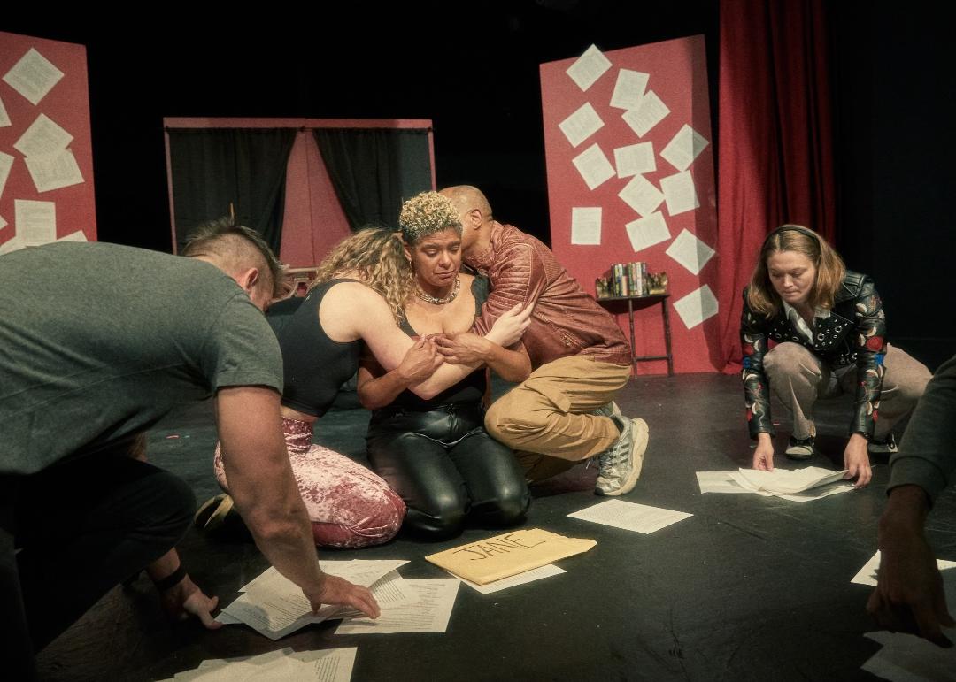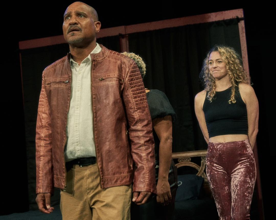 The main character of Adam Szymkowicz’ provocative new play The Sex Writer, now making its World Premiere at New York City’s Gene Frankel Theatre, is Jane. Jane, played by Tammi Cubilette, is an author of erotic fiction and a professor at Columbia University. The strong sense of drama arrives in the very first moments of Szymkowicz’ play: The audience learns that Jane’s father was an award-winning, highly revered author who, sadly, hanged himself at an arts festival. Forced to contemplate her own complicated personal relationship with her deceased dad, Jane is suffering from writer’s block and feeling contempt for her job as a professor. Her staid boss (David Arthur Bachrach) has been picking up on her professional burnout. Although she lives with her boyfriend Todd (Edward Miller), who shares Jane’s polyamorous ideals, the titular sex writer’s restless spirit and unapologetic sexual fluidity leads our protagonist to indulge in a wide variety of sexual fantasies. Some of these fantasies actually become realized, such as when she enjoys an afternoon of passion with a wide-eyed teacher’s assistant named Trish (Callie Fabac). The story takes a major turn when Jane heads over to picturesque New England hometown to settle the family estate. There, she reconnects with her mother (Olivia Baseman) and meets her late father’s assistant Sheila (Sionne Elise), whom Jane learns was her father’s lover. She also runs into Aiden (Seth Gilliam), a handsome former love interest from high school who still remembers Jane fondly. Aiden, we learn, is now widowed. Could a true romantic connection with Aiden, who favors monogamy and small-town life, be a possibility? Will Jane finally find some degree of closure with her knotty relationship with her father? Thankfully, we do get the answers to these questions… but there are many more revelations in store for both the main characters and for the audience along the way…