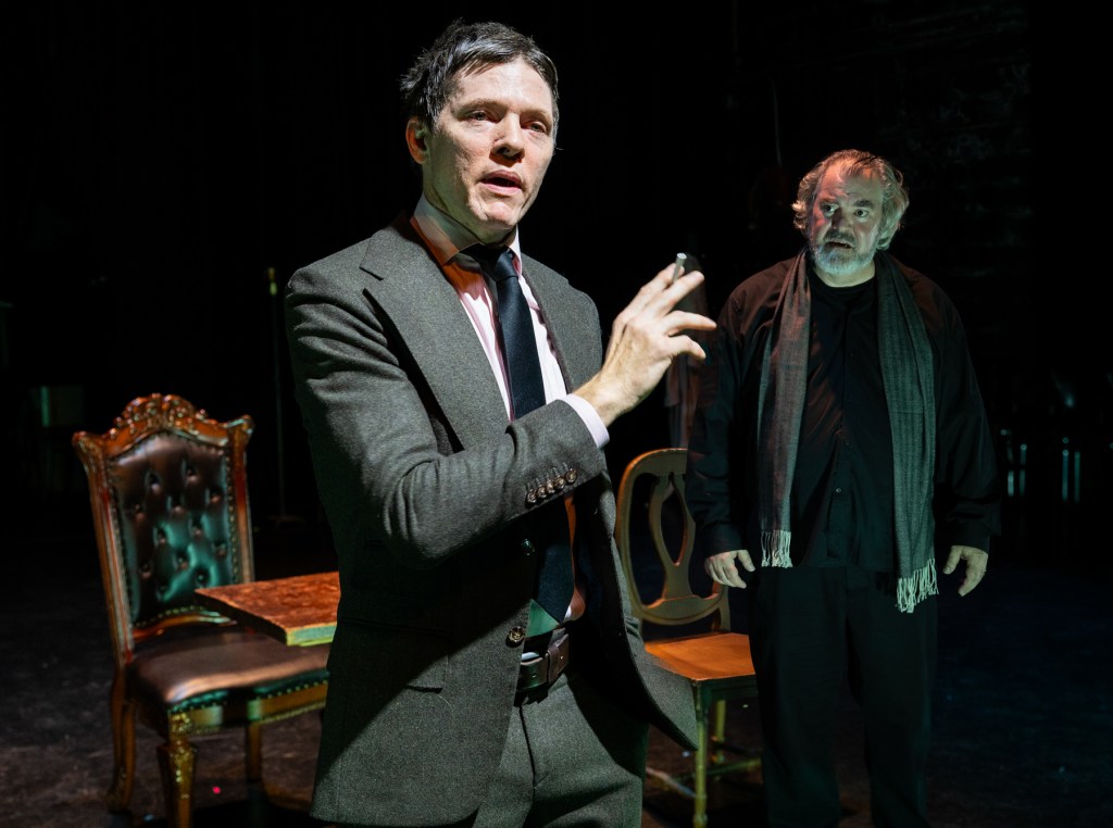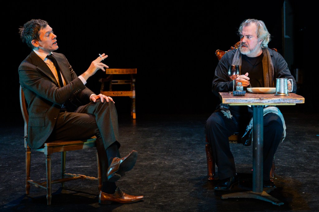 Austin Pendleton’s fascinating, lively backstage comedy-drama Orson’s Shadow, now enjoying a new run at Manhattan’s Theatre for the New City, brings four iconic actors back to the stage again– a place, few would disagree, where those actors likely have always felt most alive to begin with. The first setting of Pendleton’s play is The Gaiety Theater in Dublin in 1960, and the actors are… (Get ready!) Orson Welles (Brad Fryman), Laurence Olivier (Ryan Tramont), Joan Plowright (Cady McClain), and Vivien Leigh (Natalie Menna). In previous runs, Orson’s Shadow had won the Drama League Award for Distinguished Performance, and had received a Lucille Lortel Award nomination for Outstanding Play. Critical accolades notwithstanding, Orson’s Shadow arguably had its audience appeal already cut out for it from the start: To see the four aforementioned legends of stage and screen reincarnated in 2024 is a thrill for the audience from the get-go. That thrill is bolstered by the zesty performances of the cast. Here’s an example: Modern audiences who have been used to seeing actress Joan Plowright (now 95) playing eccentric old ladies and grandmothers will now get to see a younger, earthy version of the actress, complete with short skirt and sexy, sassy attitude. Fryman, Tramont, McClain, and Menna really give their characters all they’ve got, matching their own energy levels to the reportedly over-the-top, and often tempestuous, personalities of the larger-than-life stars they are playing. Not to be outdone, Patrick Hamilton plays Ken Tynan, a chain-smoking and chain-coughing theater critic who is Orson’s long-suffering frenemy but also the star’s most hopelessly devoted admirer. Ken, who often gets to speak directly to the audience, has the goal to bring Welles and Laurence Olivier together, creatively, for an upcoming production of the Eugene Ionesco’s idiosyncratic play Rhinoceros at the Royal Court Theatre in London. Rounding out the cast of six actors is the charming Luke Hofmaier as Sean, Welles’ young (and, all together now: “long-suffering”…) stage manager/assistant who wasn’t even born yet when Citizen Kane was released. In addition to fetching and carrying, Sean also briefly becomes the target of a manic Vivien Leigh’s affections later in the play.