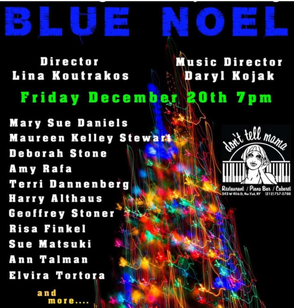 The event may have been named Blue Noel, but the mood was ANYTHING but blue on Friday, December 20th at the New York City cabaret hotspot Don’t Tell Mama. The evening was a fine mix of established cabaret “names” and some newer performers, even including a few singers who were showing their stuff for a live audience for the very first time. The song selection was a mix of humor, heart, and holiday spirit: a helluva lot of “nice” with some occasional “naughty” thrown in. The show was directed by Lina Koutrakos, a cabaret legend in her own right. Musical direction was by Daryl Kojak.